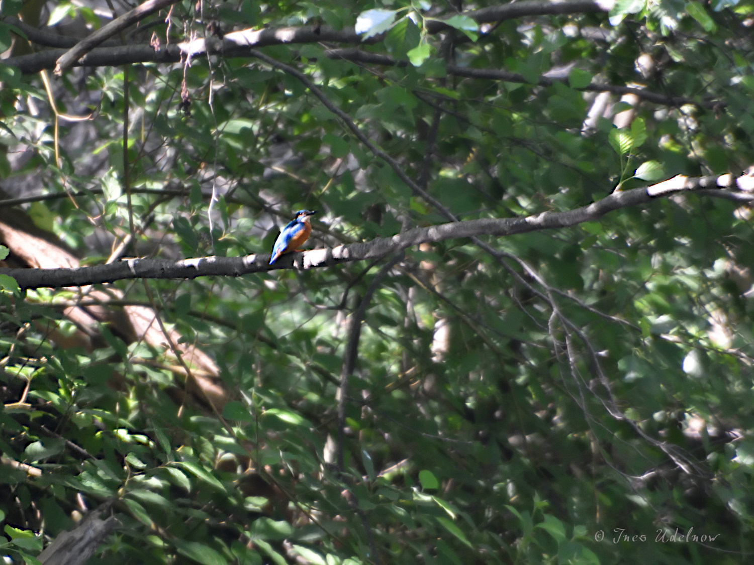 Zu Hause bei der Bildauswertung dann eine positive Überraschung. Ein Eisvogel war just in dem Moment des Auslösens durch die Bildszene geflogen. Dass jenes Naturschutzgebiet Lebensraum des Eisvogels ist, wusste ich; aber ich hatte dort bisher noch keinen entdeckt und mir auch keine großen Hoffnungen gemacht, einen zu sichten.