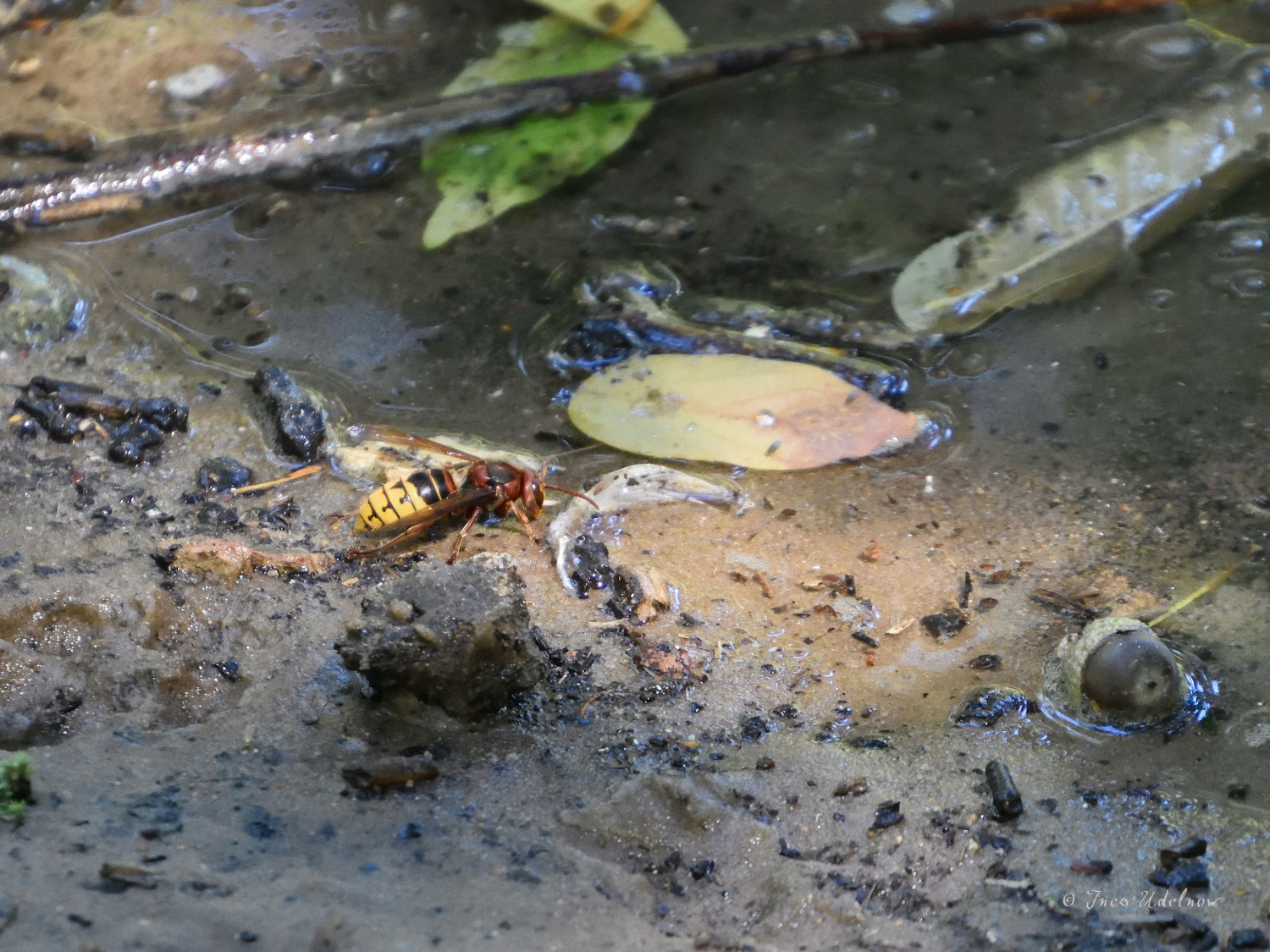 Sind sie nicht schön, die hübsch gemusterten großen Hornissen? Diese hier machte gleichzeitig mit mir eine Mittagsrast am schon leicht herbstlich geprägten Seeufer.