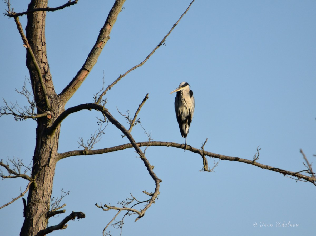 Ein bisschen oberlehrerhaft sieht es aus, wie er da so dasteht, dieser Graureiher. Fehlt ihm nur das Monokel, aber das kann man sich ja dazudenken.