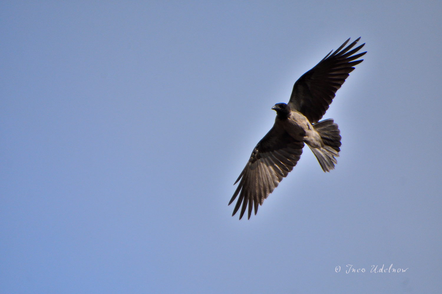 Wirkt sie nicht wie ein emporschwebender Engel, die Nebelkrähe auf dem ersten Foto? Den hellen Rand um ihre Kontur habe ich nicht per Bildbearbeitung hinzugefügt – lediglich durch Verstärkung von Helligkeit und Kontrast betont.