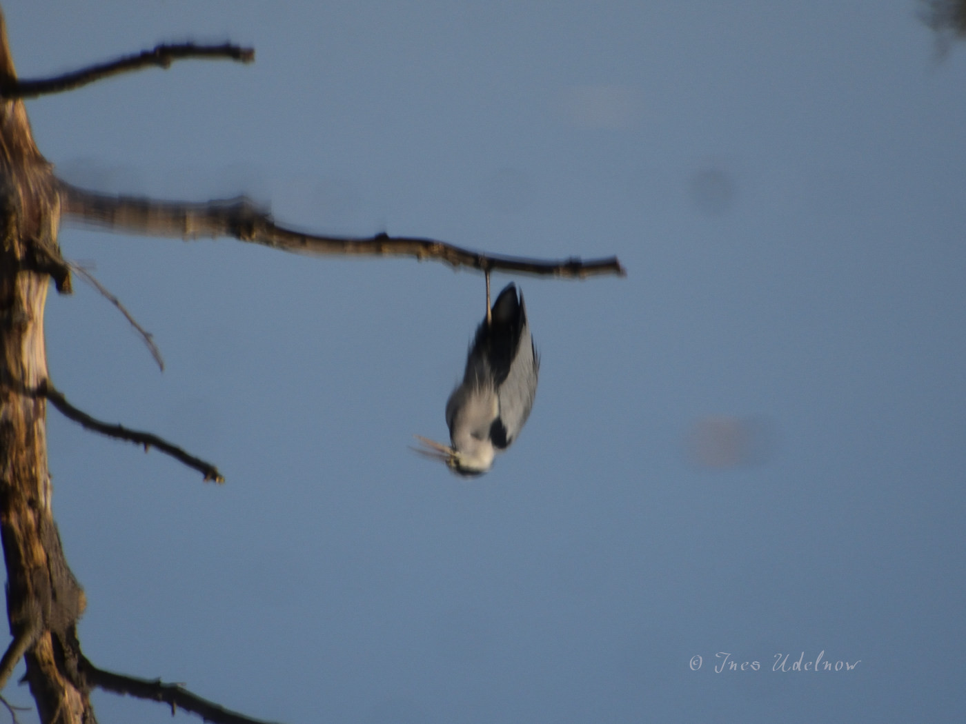 War es derselbe Graureiher, der am Sonntag auf dem Baumstamm über dem Köppchensee saß, den ich bereits vor etwa zwei Wochen an genau dieser Stelle schon einmal fotografiert hatte? Möglich ist es, aber auch nicht sehr wahrscheinlich; in jener Gegend leben mehrere Graureiher und während wir am Sonntag am Seeufer standen, konnten wir mindestens zwei weitere beobachten, die von einem Seeufer zum anderen wechselten. Dieser eine allerdings blieb stoisch und gelassen fotogen an Ort und Stelle stehen, wo er für seine Anmut und Eleganz ausreichend Würdigung fand.