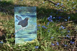 Vogelbilder. Kunst auf Zigarrenkistenbrettchen