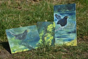Vogelbilder. Kunst auf Zigarrenkistenbrettchen