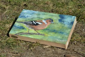 Vogelbilder. Kunst auf Zigarrenkistenbrettchen