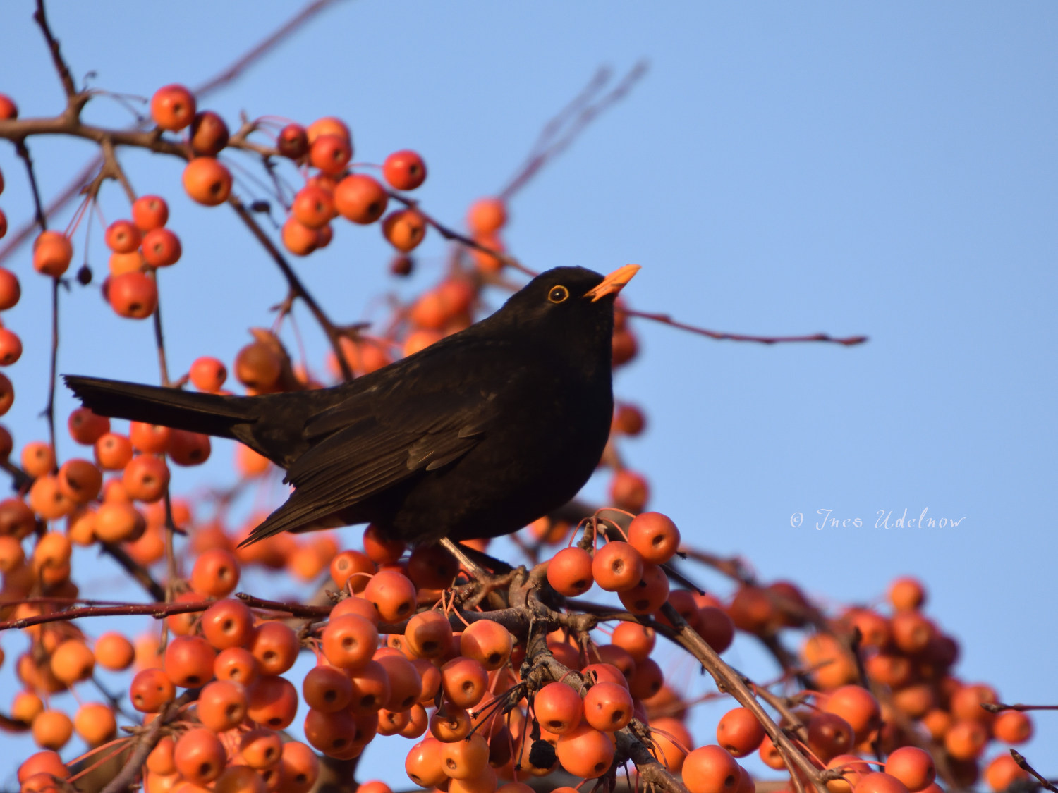 Den Anfang macht hier heute ein hübsches Amselmännchen, ein Vogel, den ja nun wahrscheinlich jede und jeder identifizieren kann, ohne sich genauer in der Welt der Vögel auszukennen. Wer vor dem Wochenende noch etwas Auffrischung der Kenntnisse in Sachen Vogelkunde braucht – der Vogeltrainer des Nabu bietet einen guten Einstieg.