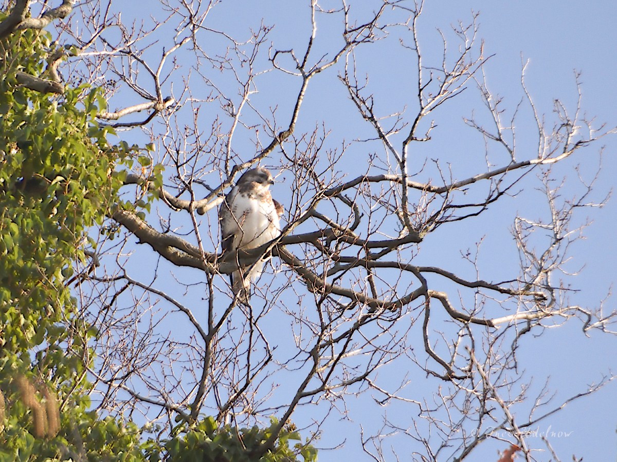 Am Montag hatte ich das Glück, im Tiergarten einen Bussard hoch oben auf einem Baum sitzen zu sehen, für mein Objektiv in gerade noch erträglicher Ferne und sonnenbestrahlt. Für eine kurze Weile schaute er zu mir herunter, aber von großem Interesse war ich nicht – ich schien ihm weder Gefahr noch Beute zu sein. An Menschenansammlungen, Autolärm und Musikbeschallung sind Stadtbussarde, wie andere Tiere auch, ohnehin gewöhnt. Ich frage mich oft, wie unsere gefiederten Mitgeschöpfe uns Menschen, wie wir uns ja so wichtig nehmen, wahrnehmen.