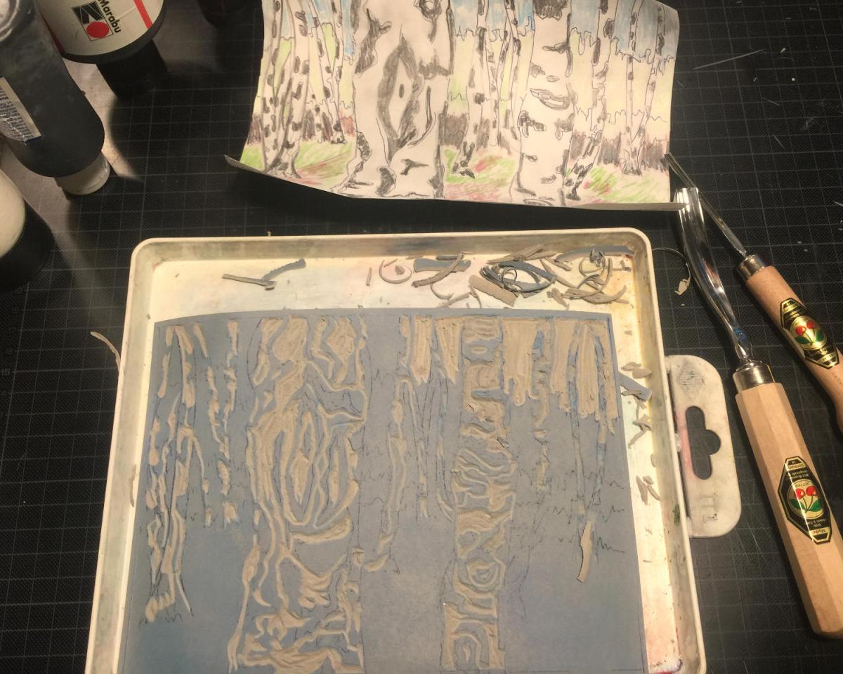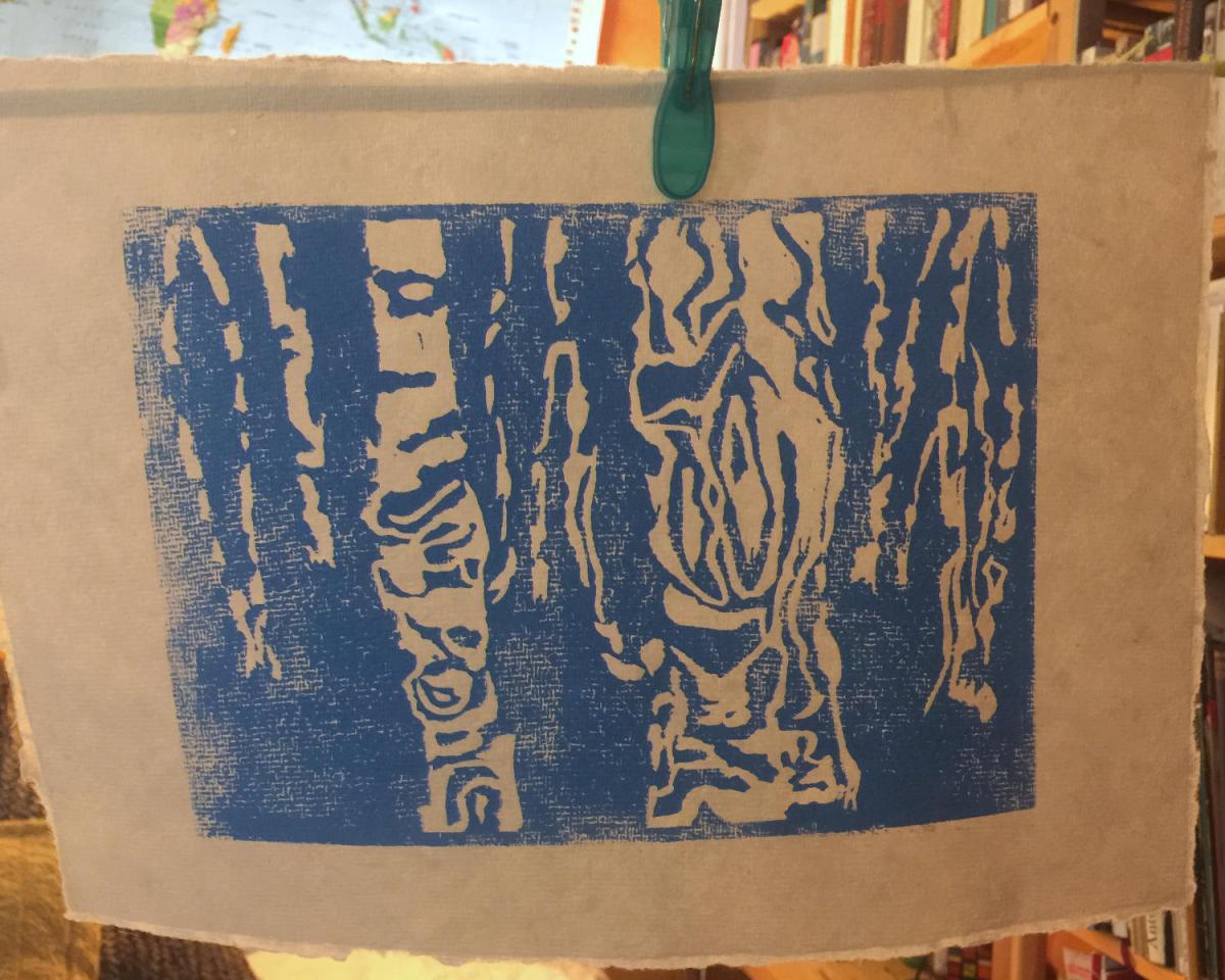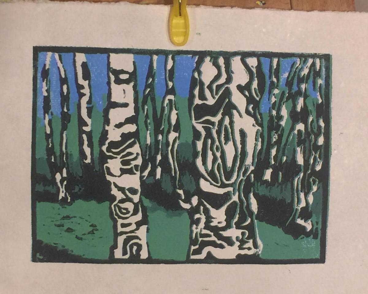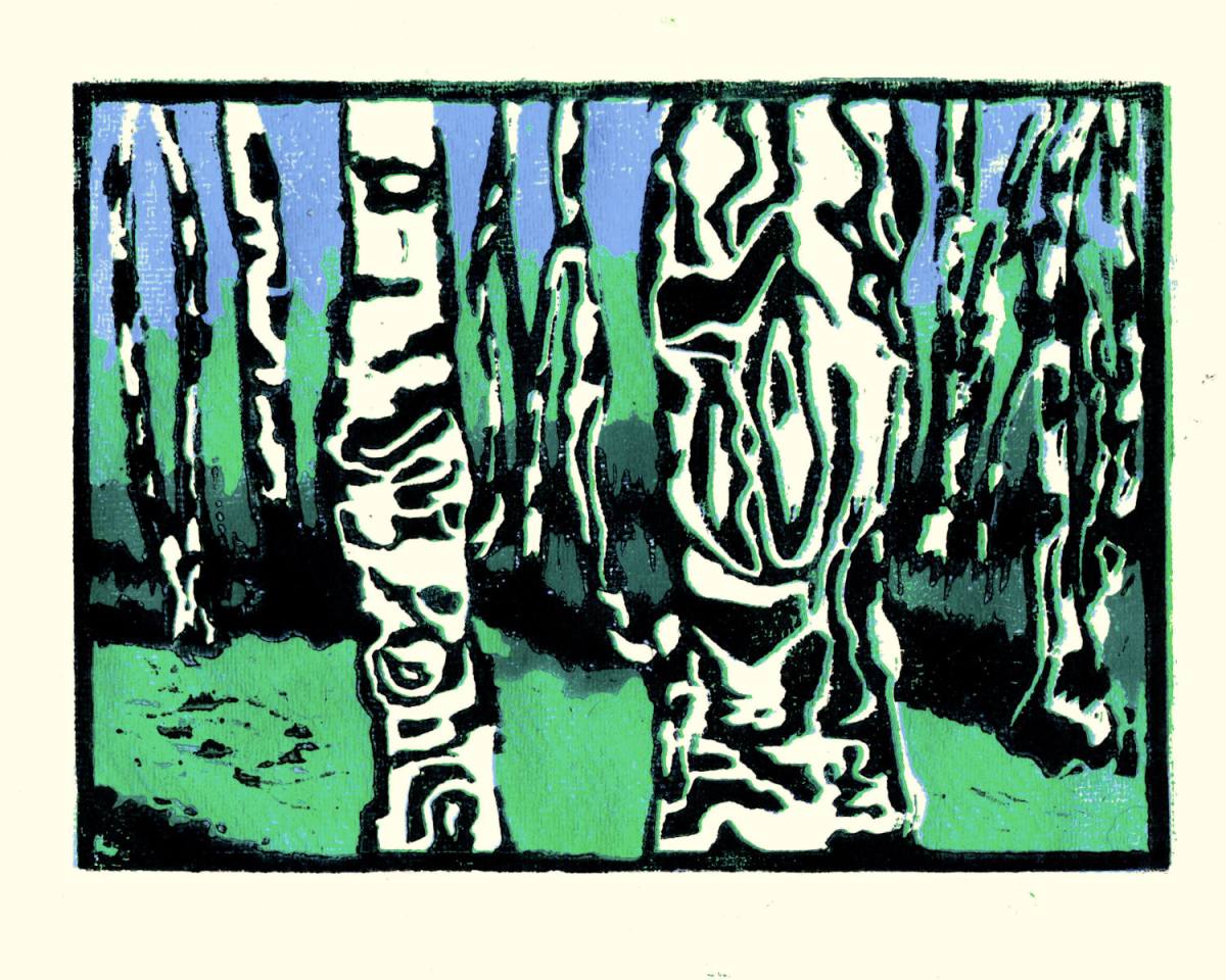 Linolschnitt. Im Birkenwäldchen