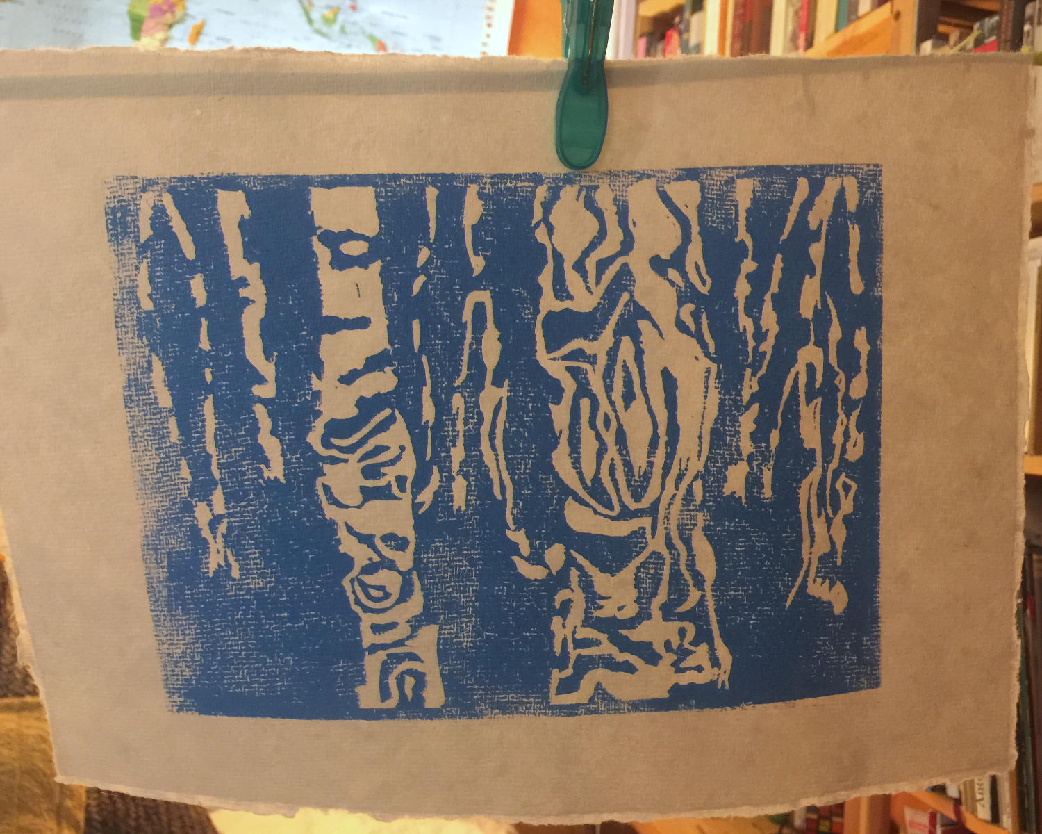 Dieser Linolschnitt entstand schon vor ein paar Wochen und ich habe meinem Arm damals damit nichts gutes getan. Der Arm ist besser, aber inzwischen scheint mir die Physiotherapie zu fehlen; ich mache keine Fortschritte mehr in Richtung Schmerzfreiheit. Daher warte ich lieber noch mit dem nächsten Schnitt. Obwohl ich riesige Lust dazu hätte.