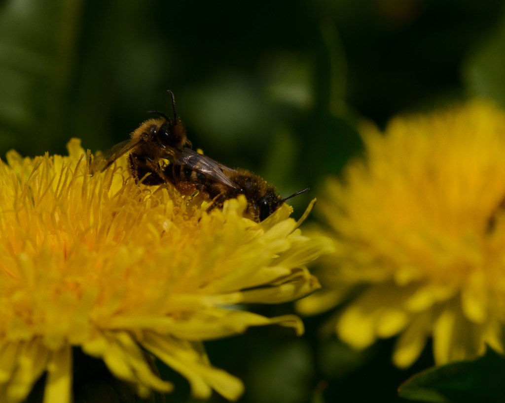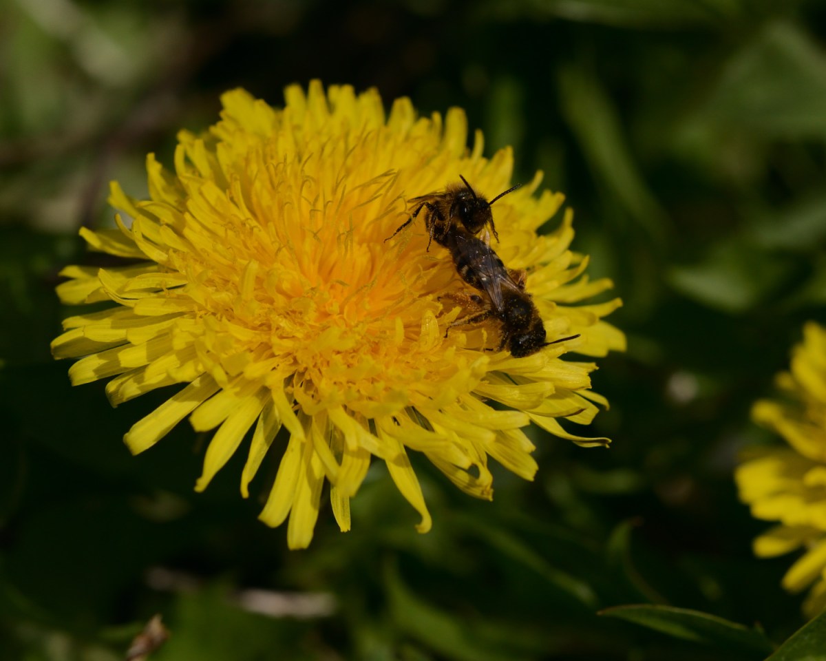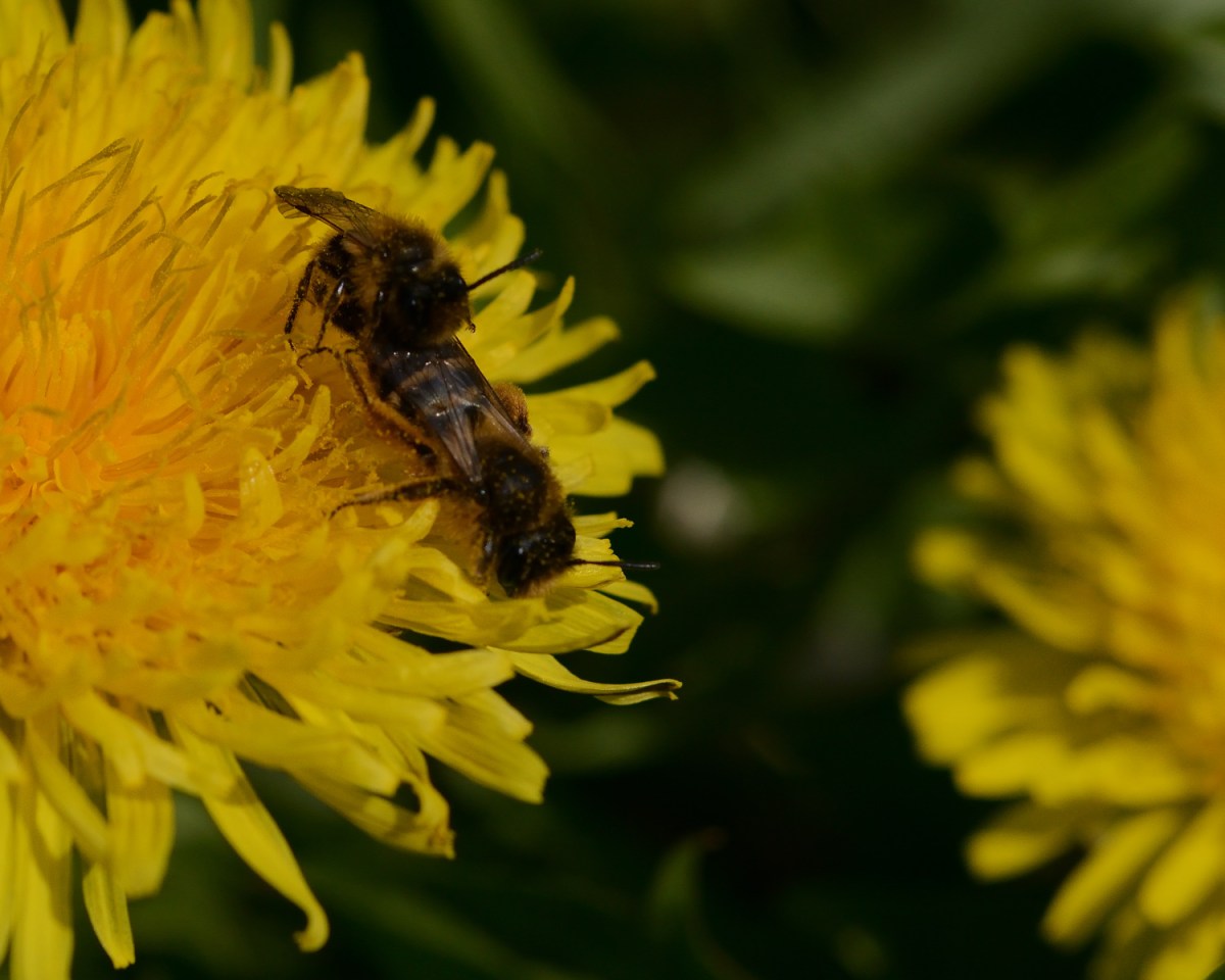 Die Geduld und Ausdauer, nach dem Insektennamen dieses Liebespaars zu suchen, hatte ich nicht, finde die Fotos aber interessant genug, sie trotzdem zu zeigen. Gut sichtbar ist, dass das Männchen deutlich kleiner ist als das Weibchen. Nach Beendigung des Aktes schien sie sich kurz zu schütteln und er zog von dannen – bevor auch sie zur nächsten Blüte weiterflog.