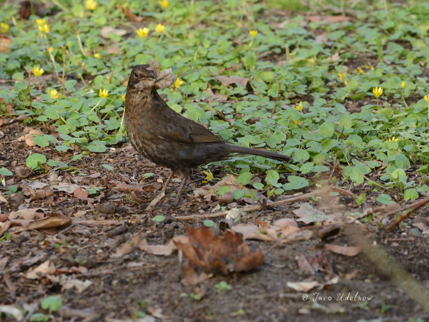 Es ist immer ein schöne Anblick, diese Nestmaterial sammelnden Amseln.