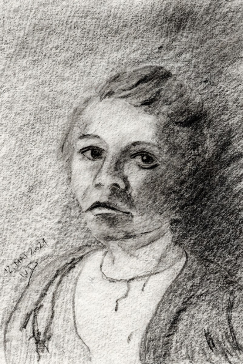 Selbstportrait, 21. Mai 2021, Bleistifte auf Silberburg Büttenpapier. © Ines Udelnow