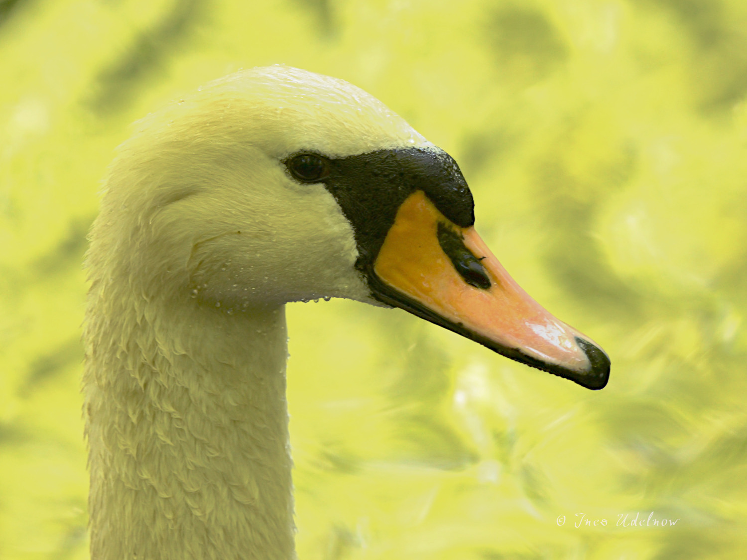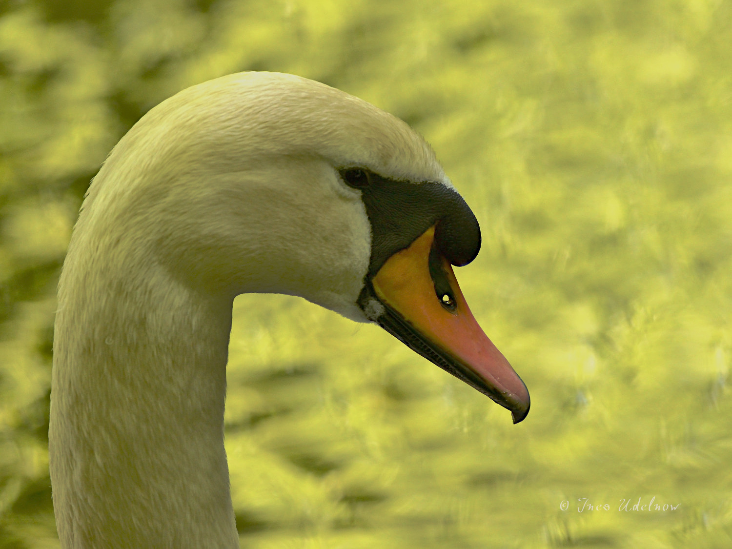 Das Ehepaar Schwan aus dem Tiergarten gestattete mir neulich eine kleine Portraitserie, wobei sich beide aus einer ähnlichen Perspektive ablichten ließen. Herr Schwan ist in dieser Nahansicht von seiner Gattin durch den stärker ausgeprägten Höcker am Schnabelansatz zu unterscheiden.
