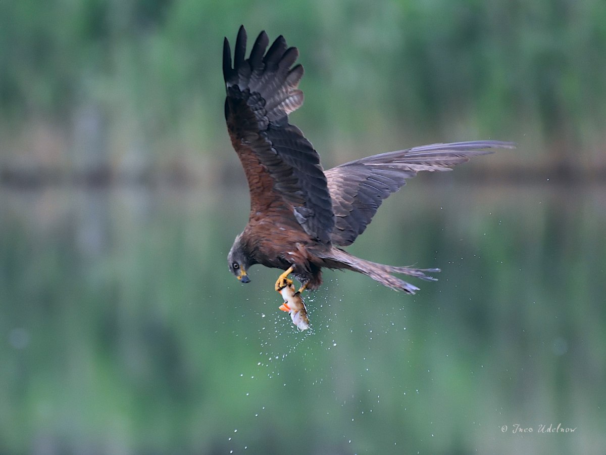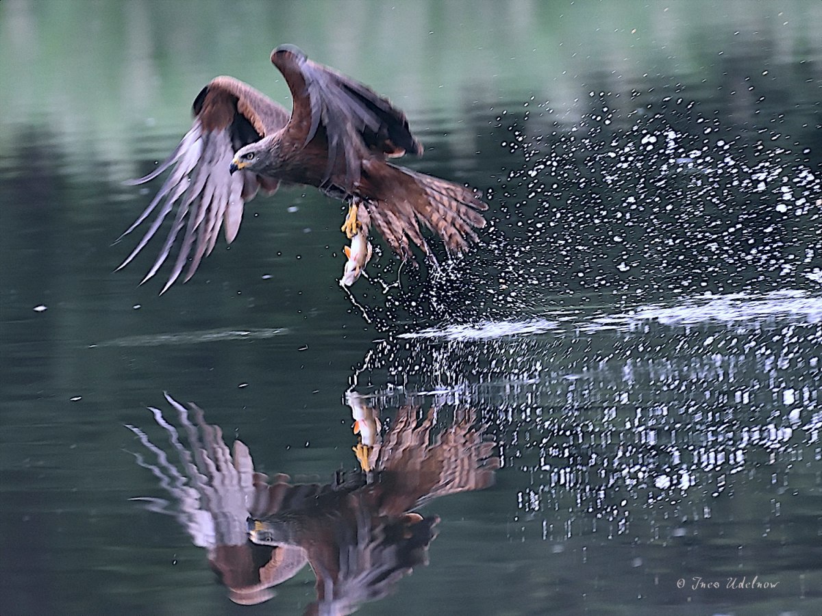 Ganz unerwartet machte mir die Natur zum Zahlenjubiläum ein unbezahlbares Geschenk. Nicht nur, dass ich heute am Köppchensee im Norden Berlins mal wieder allerlei Getier beobachten und fotografieren konnte. Ein Schwarzmilan stürzte sich auch noch vor meiner gezückten Kamera ins Wasser und flog mit einem Fisch davon. Ein solches Fotoglück hatte ich bisher noch nie. Die dabei entstandenen Bilder sind eines 1777. Blogbeitrags ganz sicher würdig.