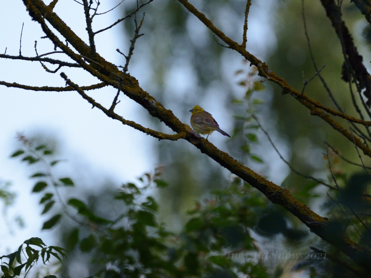 Eine kleine Goldammer im Abendlicht, gesehen, gehört und auch fotografiert nahe des Köppchensees im Berliner Norden.