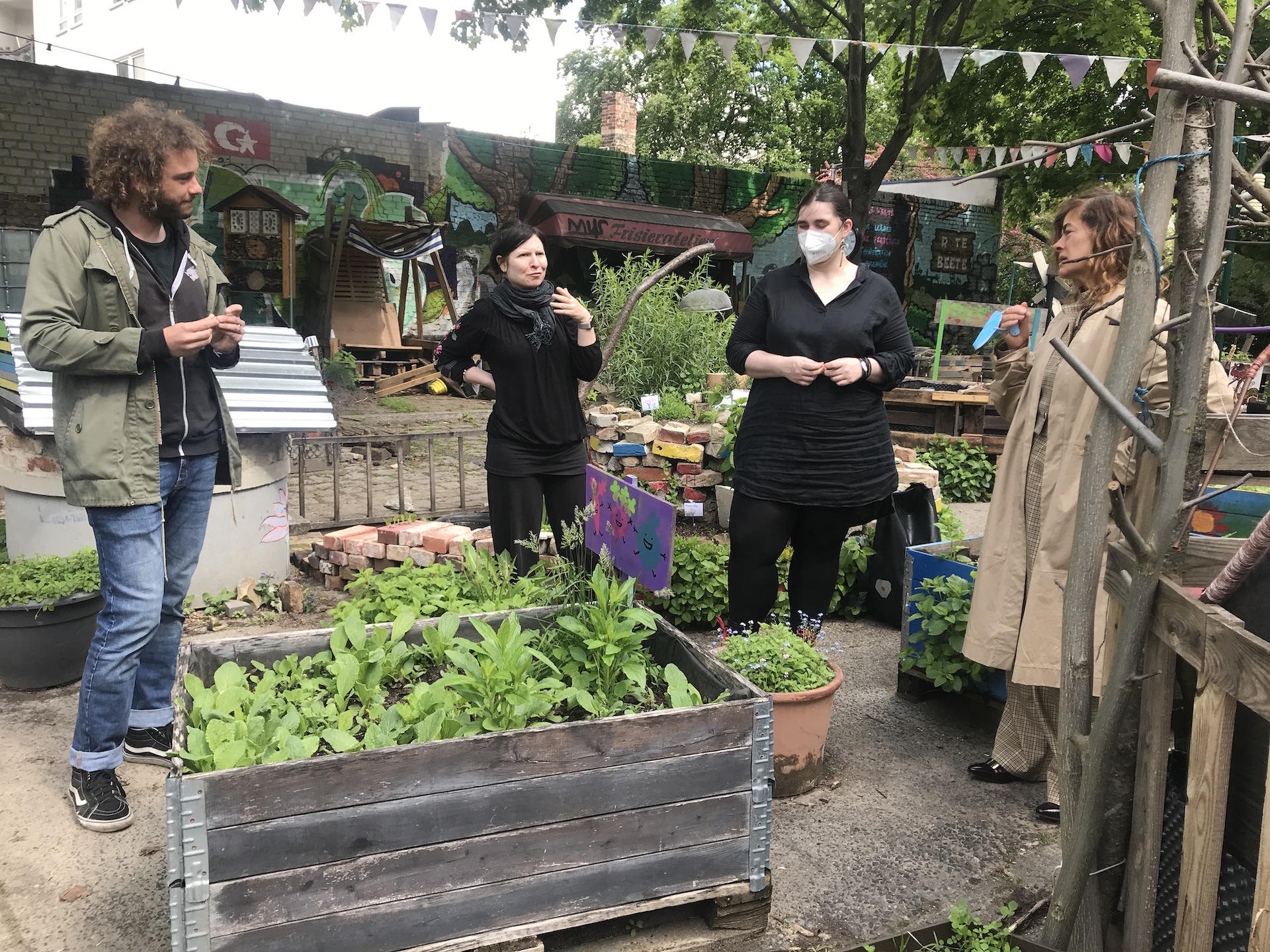 So ganz auf den ersten Blick ist der Rote Beete Garten übrigens nicht zu finden. Denn von der Müllerstraße kommend ist er nicht zu sehen. Wer auf der sich auf der Müllerstraße stadtauswärts bewegt, passiert noch das Gebäude des Centre des Francais, biegt vor dem nicht zu übersehenden Minieifelturm rechts ab und schreitet wohlgemut voran, denn nach ein paar Schritten ist schon der Gemeinschaftsgarten zu erkennen. Der Lärm der Müllerstraße geht in ein Hintergrundrauschen über und Ihr steht in einem kleinen innerstädtischen Gartenparadies. Ich habe mich an einer kleinen Karte versucht; möge sie der einen oder dem anderen helfen.