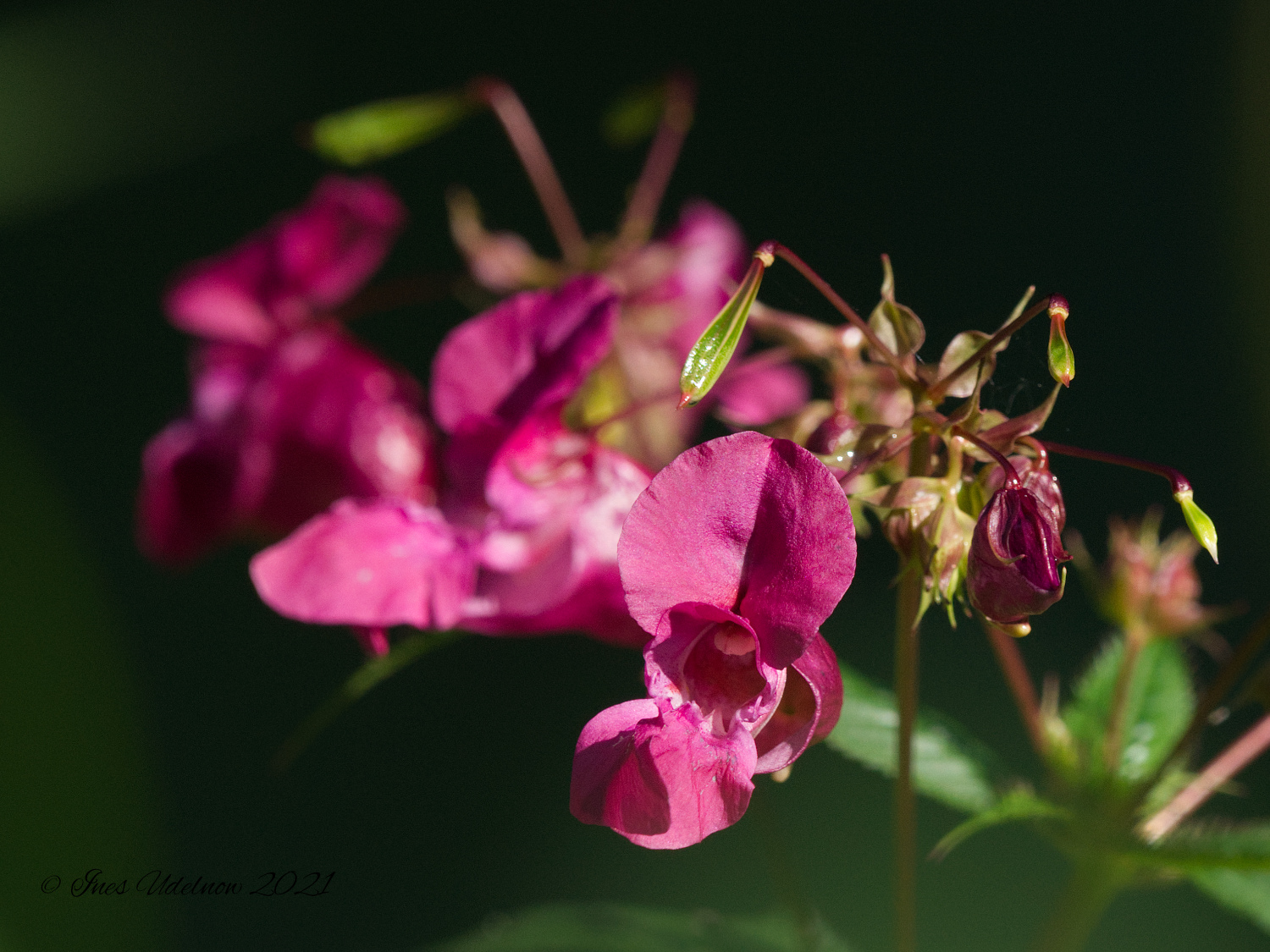 Als ich nach dem Namen dieser hübsch blühenden Pflanze suchte, fand ich gewisse Enttäuschung. Es handelt sich hier um das Drüsige Springkraut (Impatiens glandulifera), auch Indisches Springkraut genannt, weil ursprünglich in der Gebiet des Himalaya beheimatet. Es wurde als Gartenpflanze nach Europa geholt und ist verwildert. Wie „gefährlich“ das Springkraut nun letzendlich ist, vermag ich nicht zu beurteilen. Es steht zumindest in Verdacht, eventuell andere Pflanzenarten zu verdrängen bzw. wenistens das vegetative Gleichgewicht zu stören. Daher wird versucht, die weitere Ausbreitung der Pflanze einzudämmen.