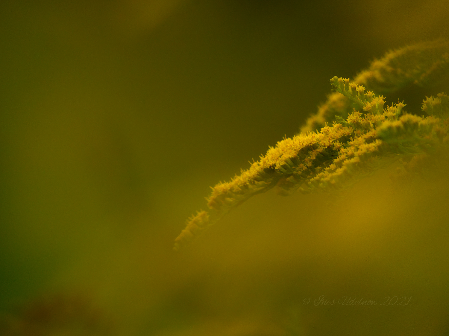 Für sich allein stehend mag ich das Wiesengold-Foto einzelner Goldruteblüten sehr gern. Doch neben der zweiten Bearbeitung wirkt es unverdient farblos. Also habe ich mich hier entschieden, die beiden Fotos auf zwei einzelne Beiträge aufzuteilen.
