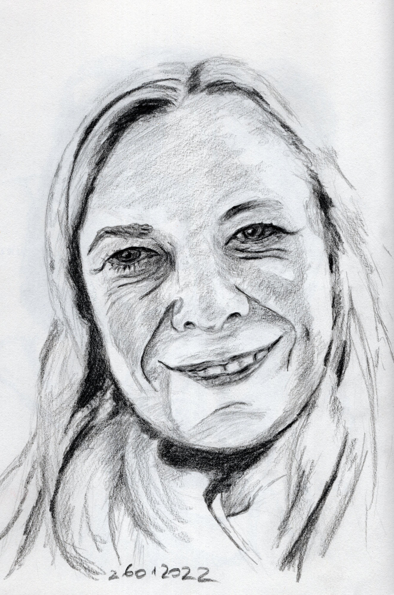 Meine zweite liebste Freundin wird sich demnächst auch ein wenig Zeit nehmen müssen, mir live Portrait zu sitzen. Bis wir das Livezeichnen in die Tat umsetzen, übe ich mich weiter darin, sie nach Fotos zu zeichnen – hier mit Bleistiften ins Skizzenbuch A4.