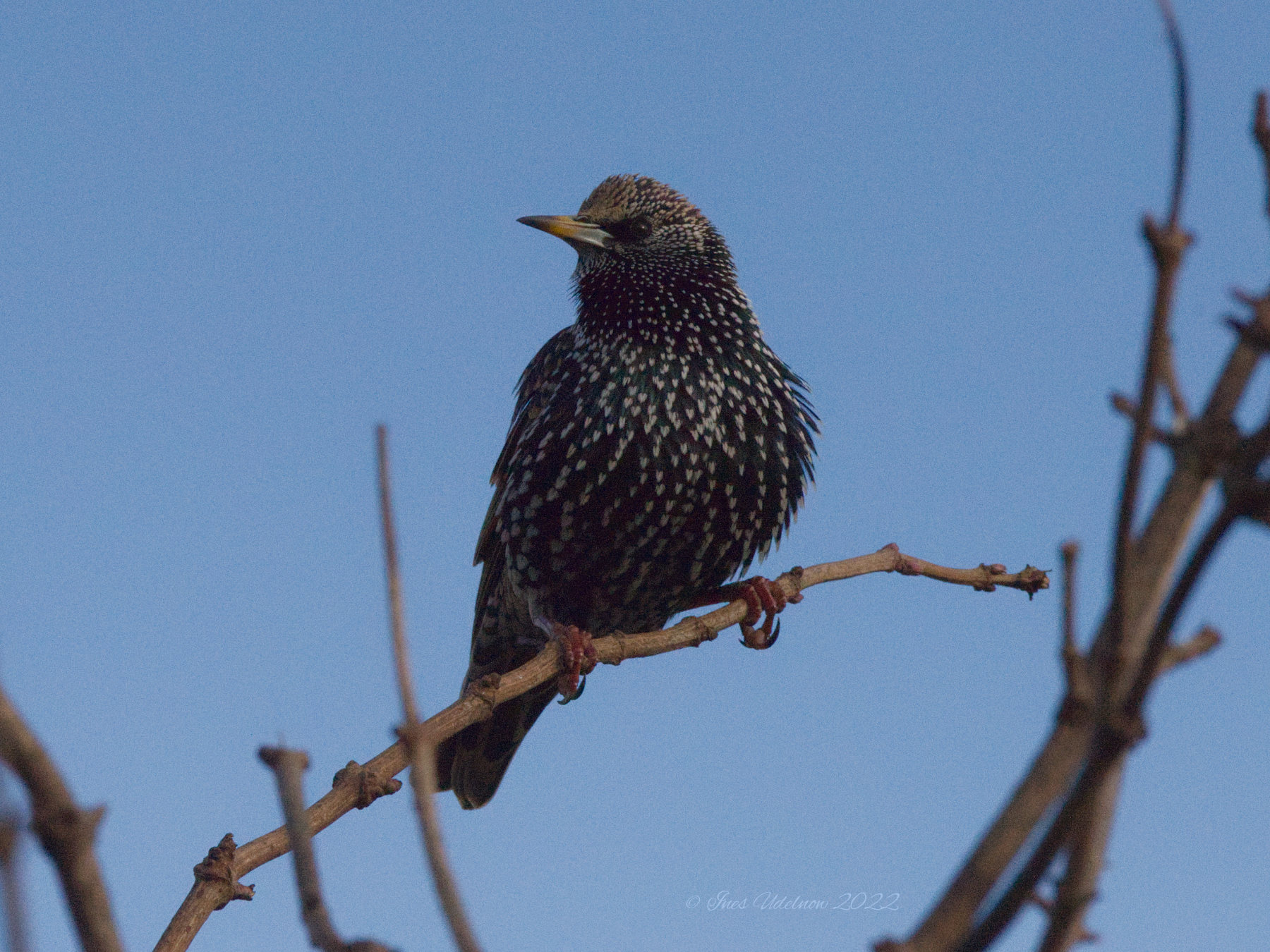 A group of starlings hibernates in Mauerpark, always squawking loudly in chorus. It seems they want to drown out the sparrows. One of them presented itself quite photogenically on a branch in the bright daylight. Small pleasures in the grey everyday life of winter.