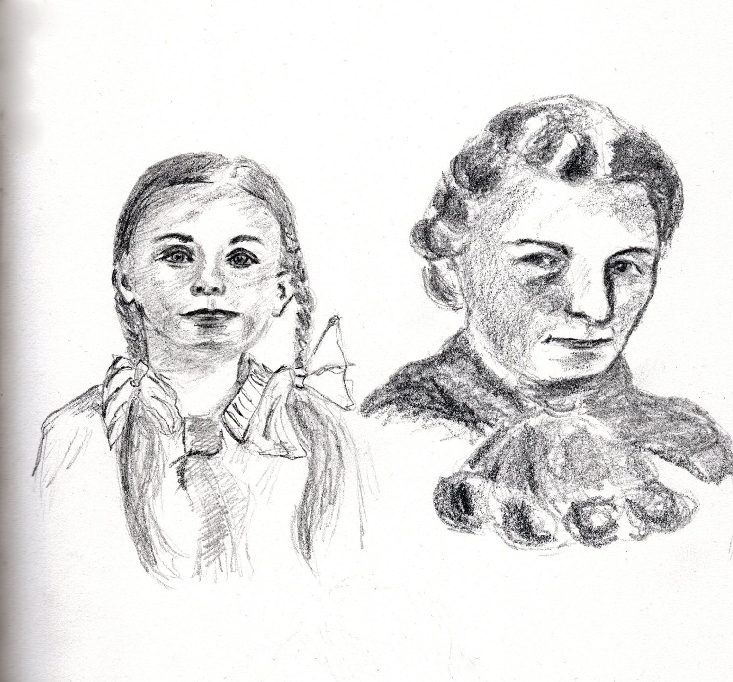 Portraitzeichenübung. Ruth, mit Bleistiften im Skizzenbuch, April 2022