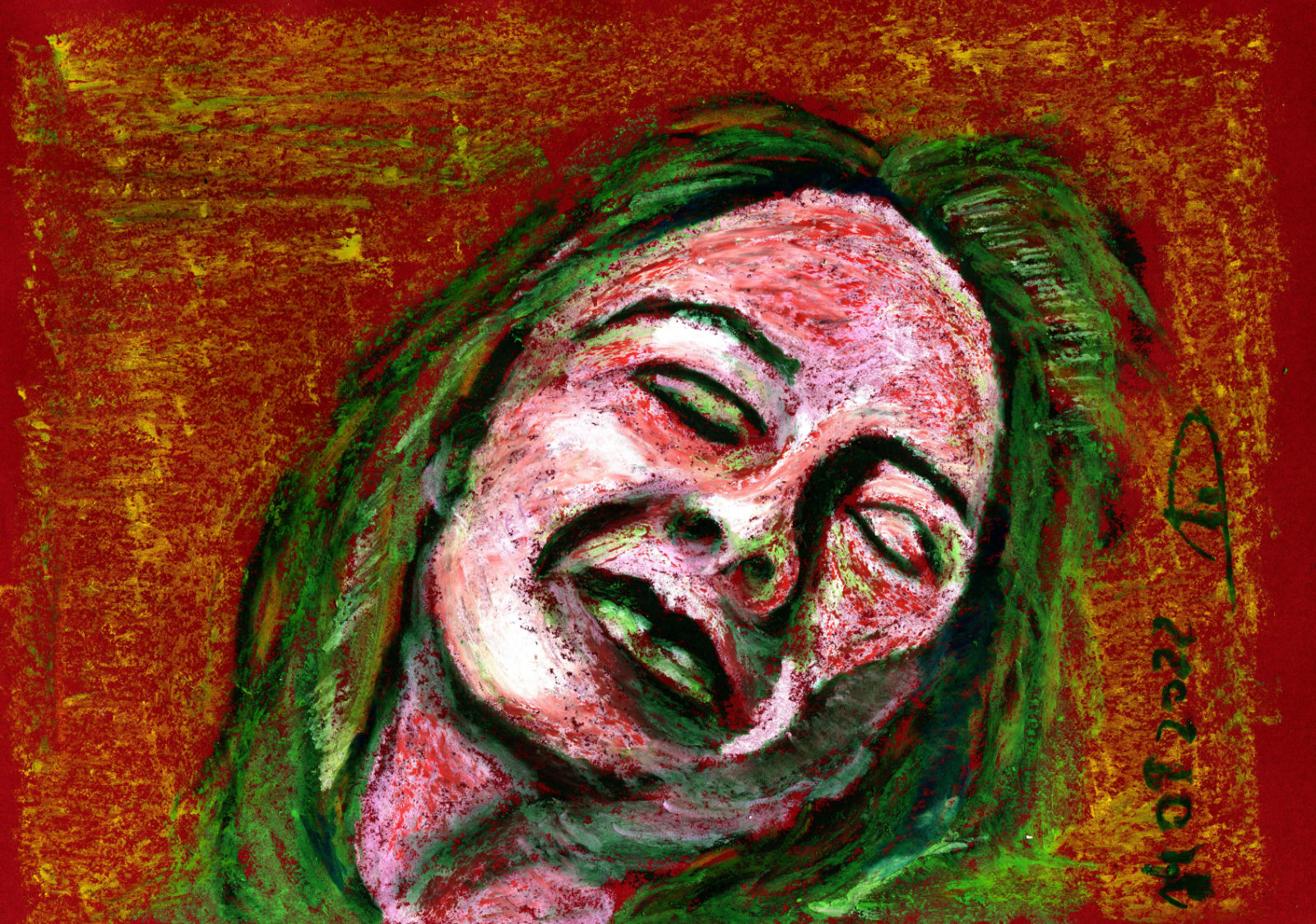 Ich träume vom Meer. Ölpastellkreide auf rotem Fotokarton, A4, 14. September 2022