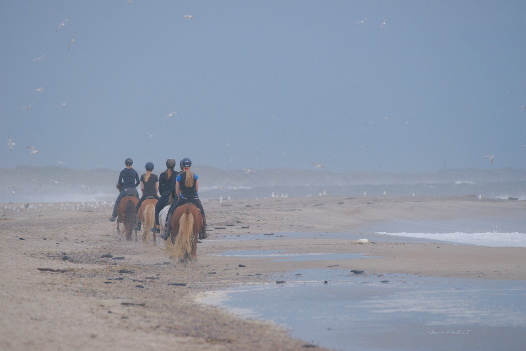Suddenly, as if out of nowhere, a group of female riders appear on the beach, leisurely pass us by and soon disappear again in the distance.