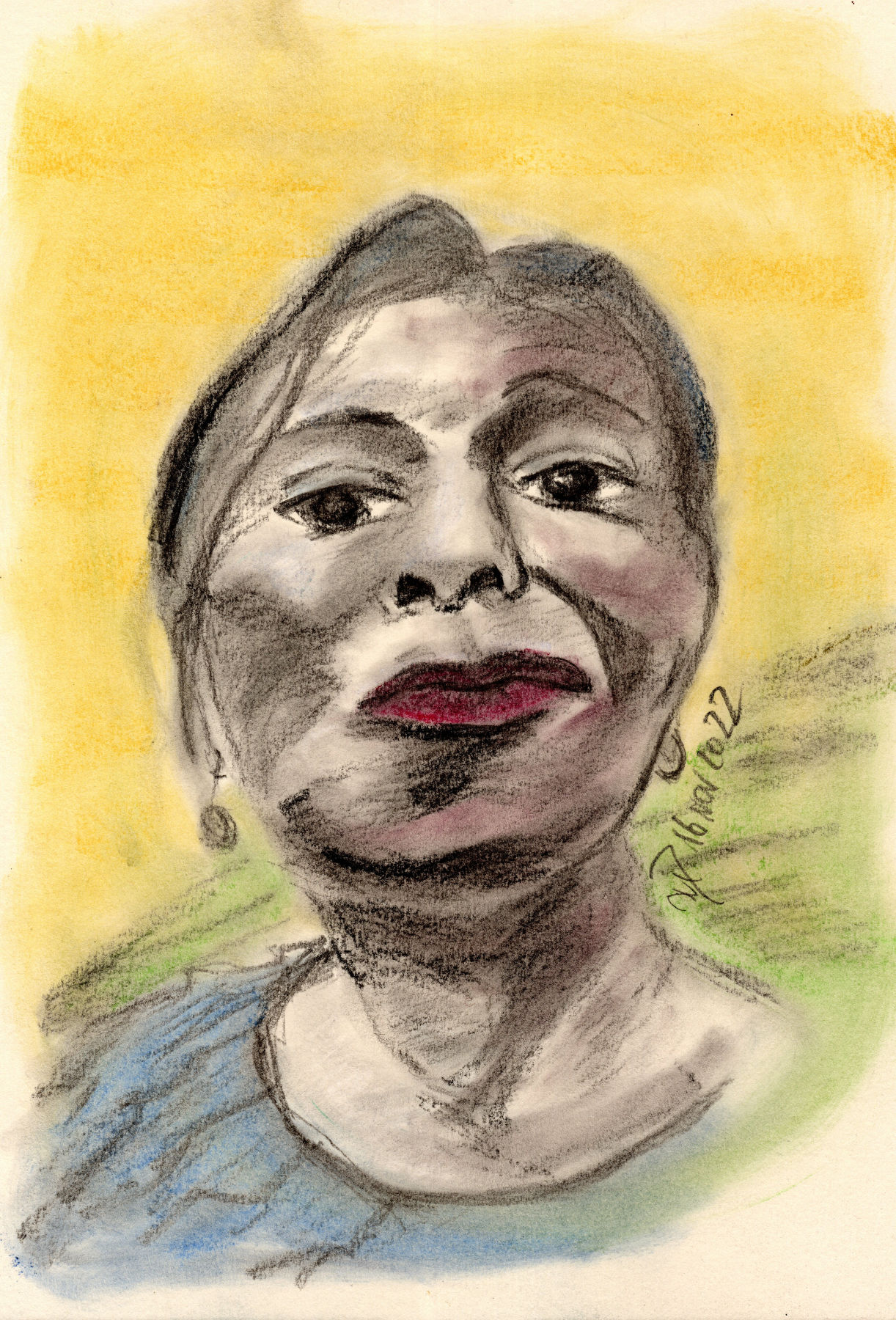 Die fünfte Zeichnung dann wieder auf die herkömmliche Art, mit Kohlestift und einer schwachen Kolorierung mit Pastellkreiden auf naturfarbenem Zeichenpapier A4.