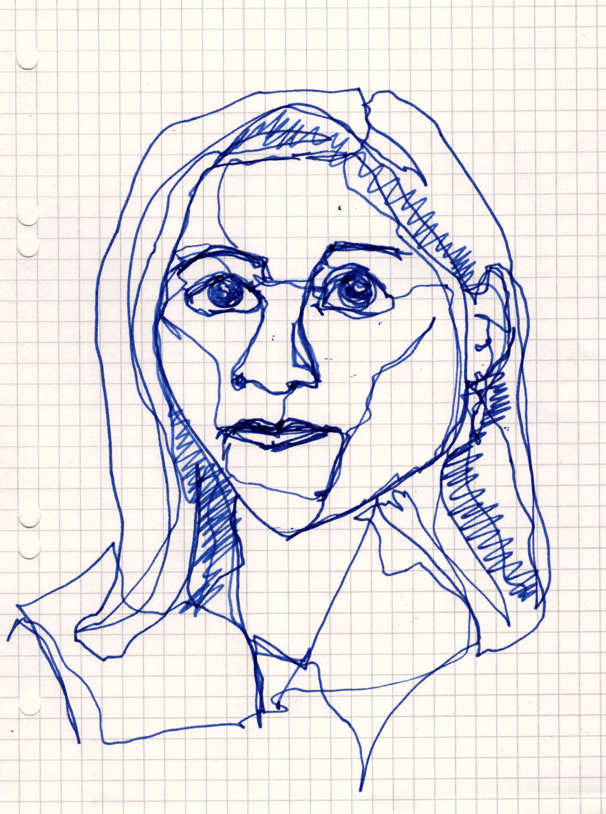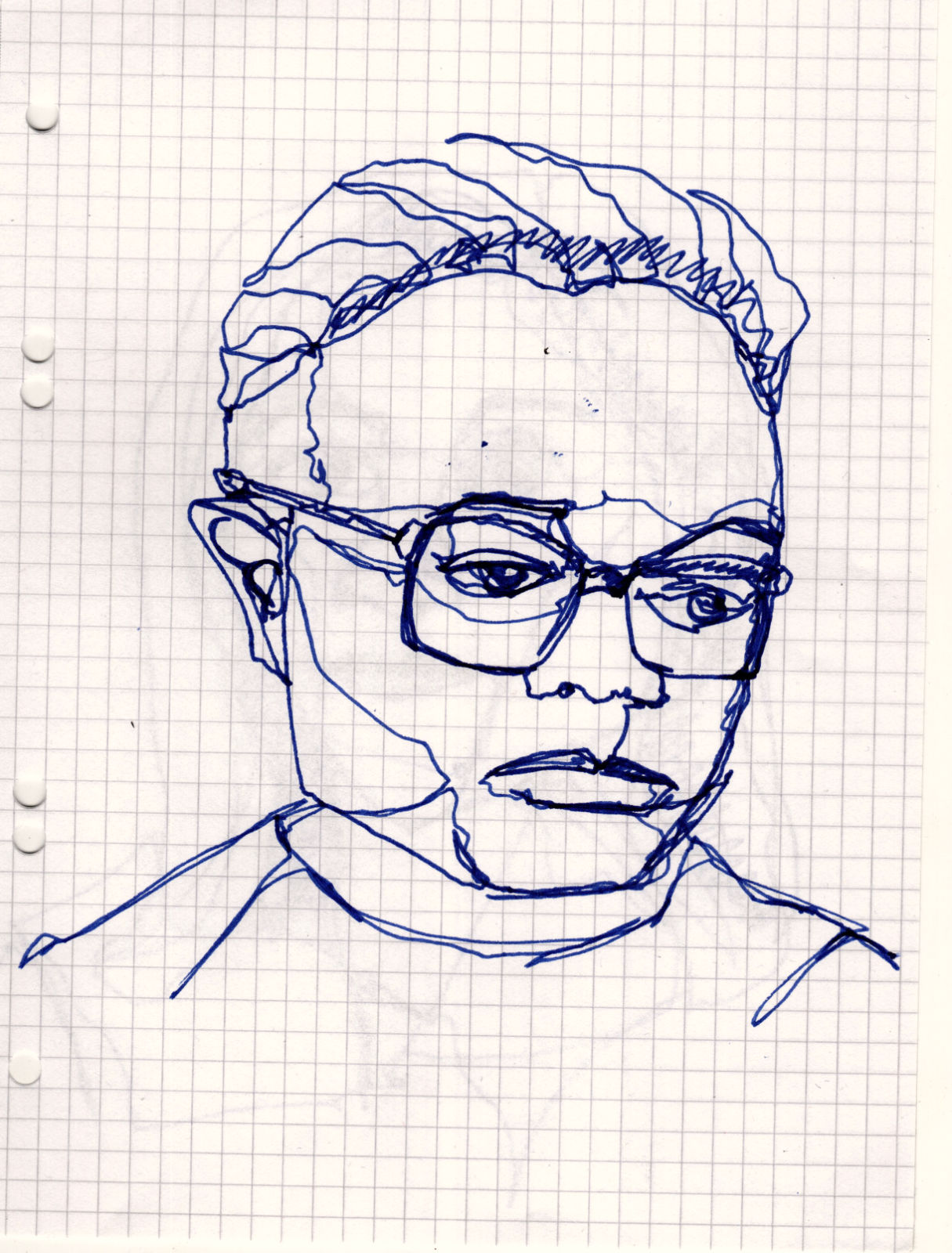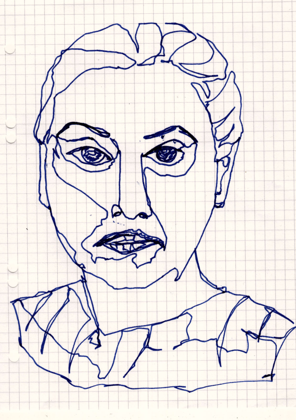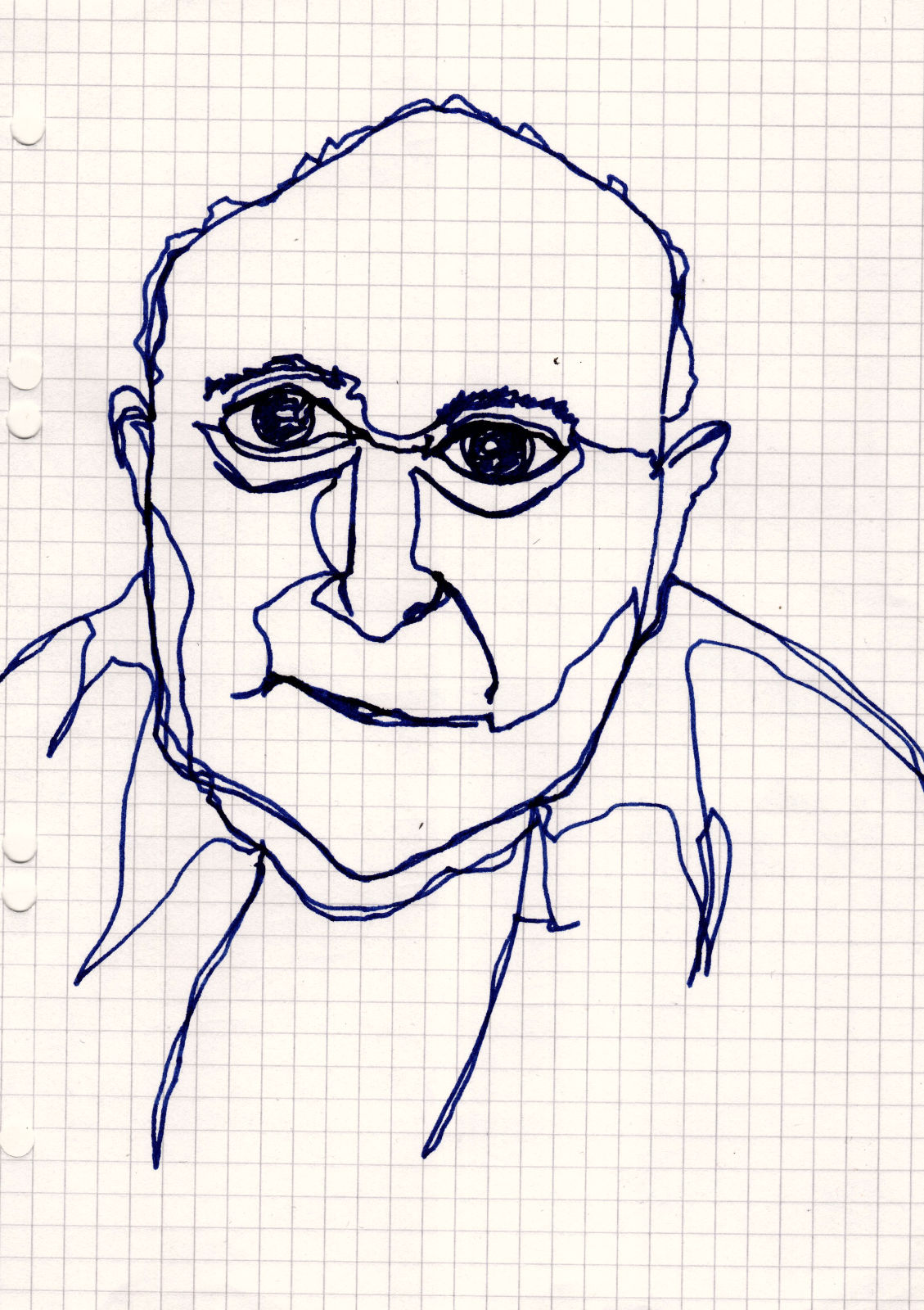 Four small one-line sketches from this evening, today in the chequered A5 notepad that was at hand and with school fountain pen.