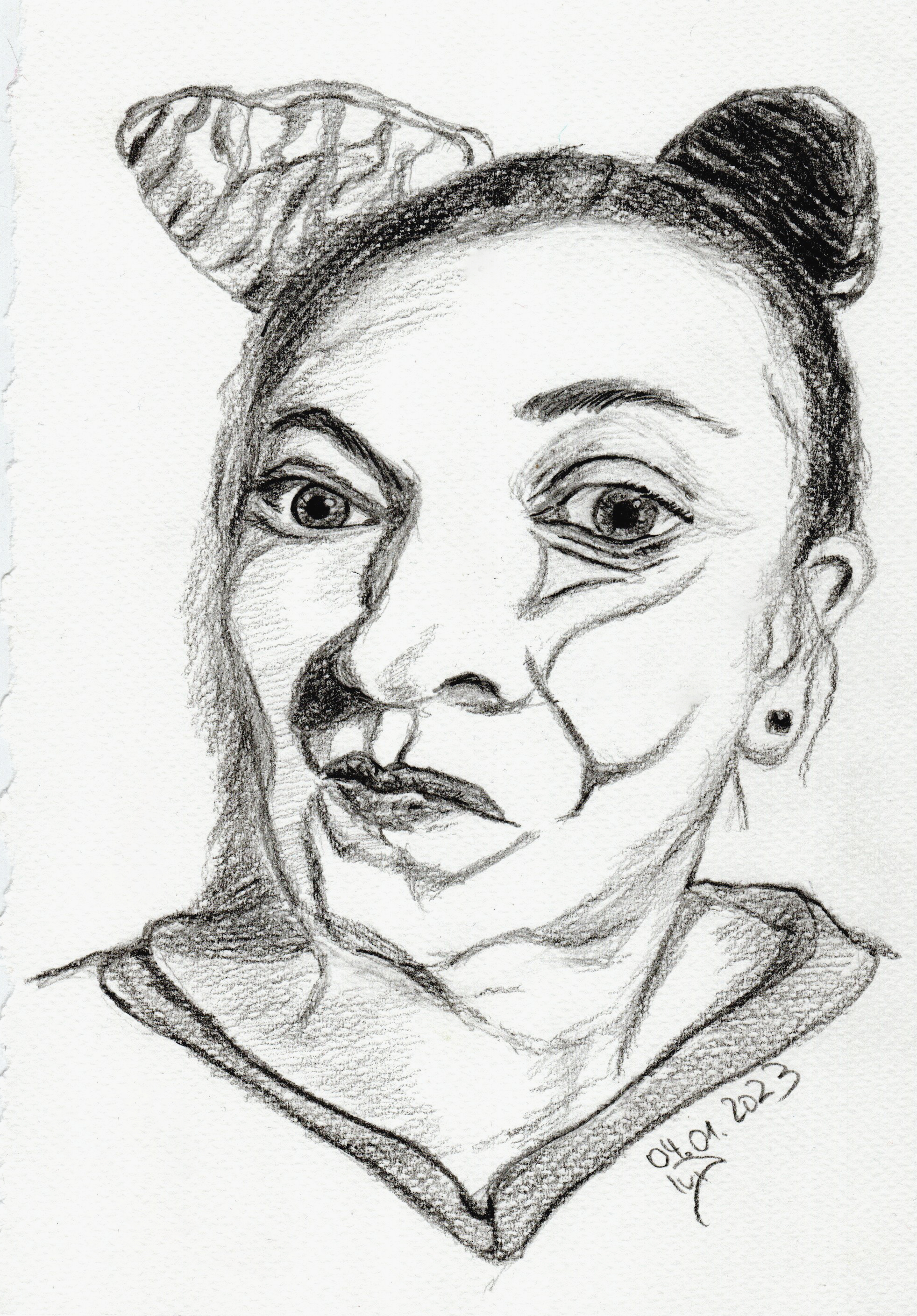 I didn’t draw in A4 format – as is often the case with my self-portraits – but on blank sheets of paper that I had previously taken from older A5-format sketchbooks which I had cleared out.