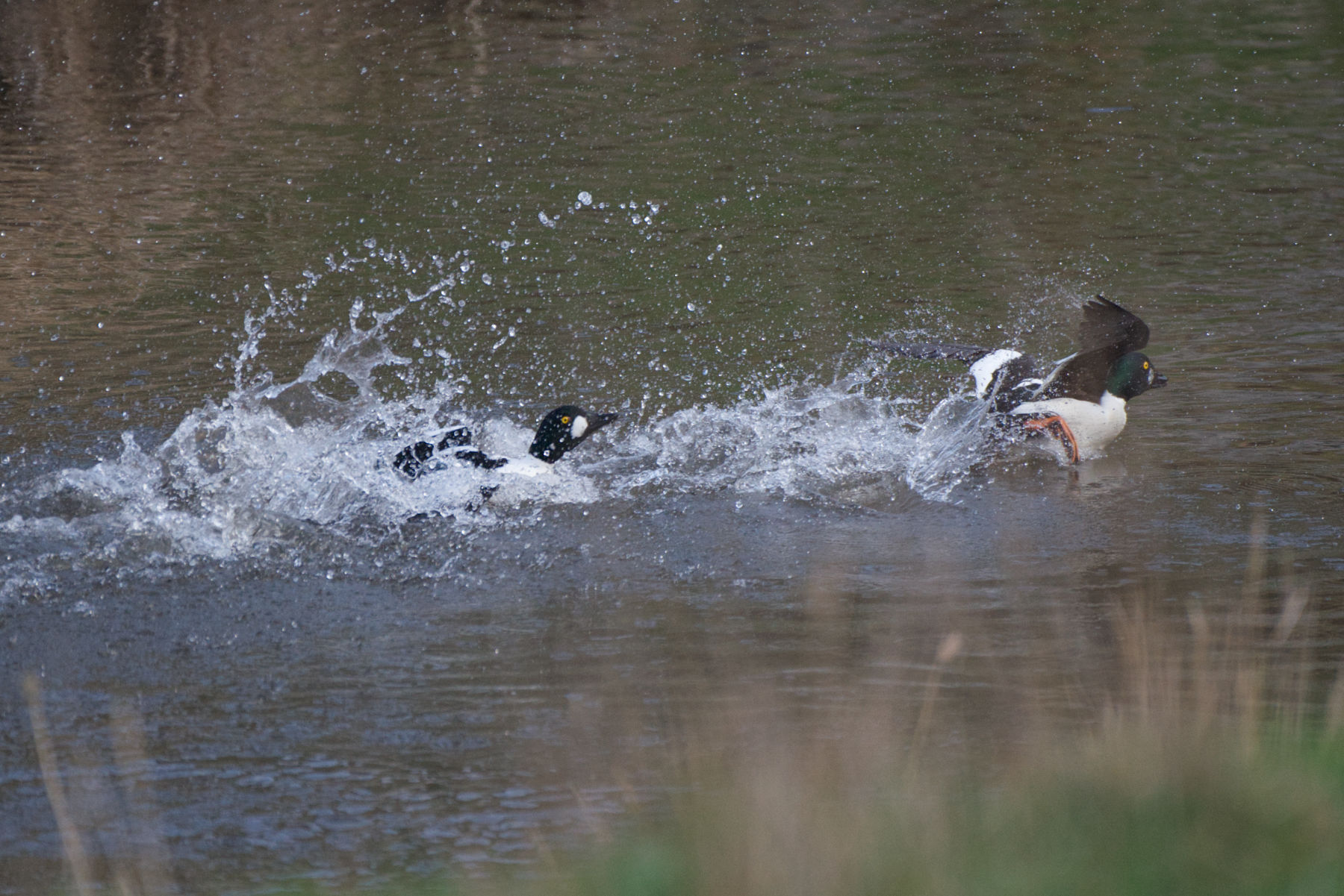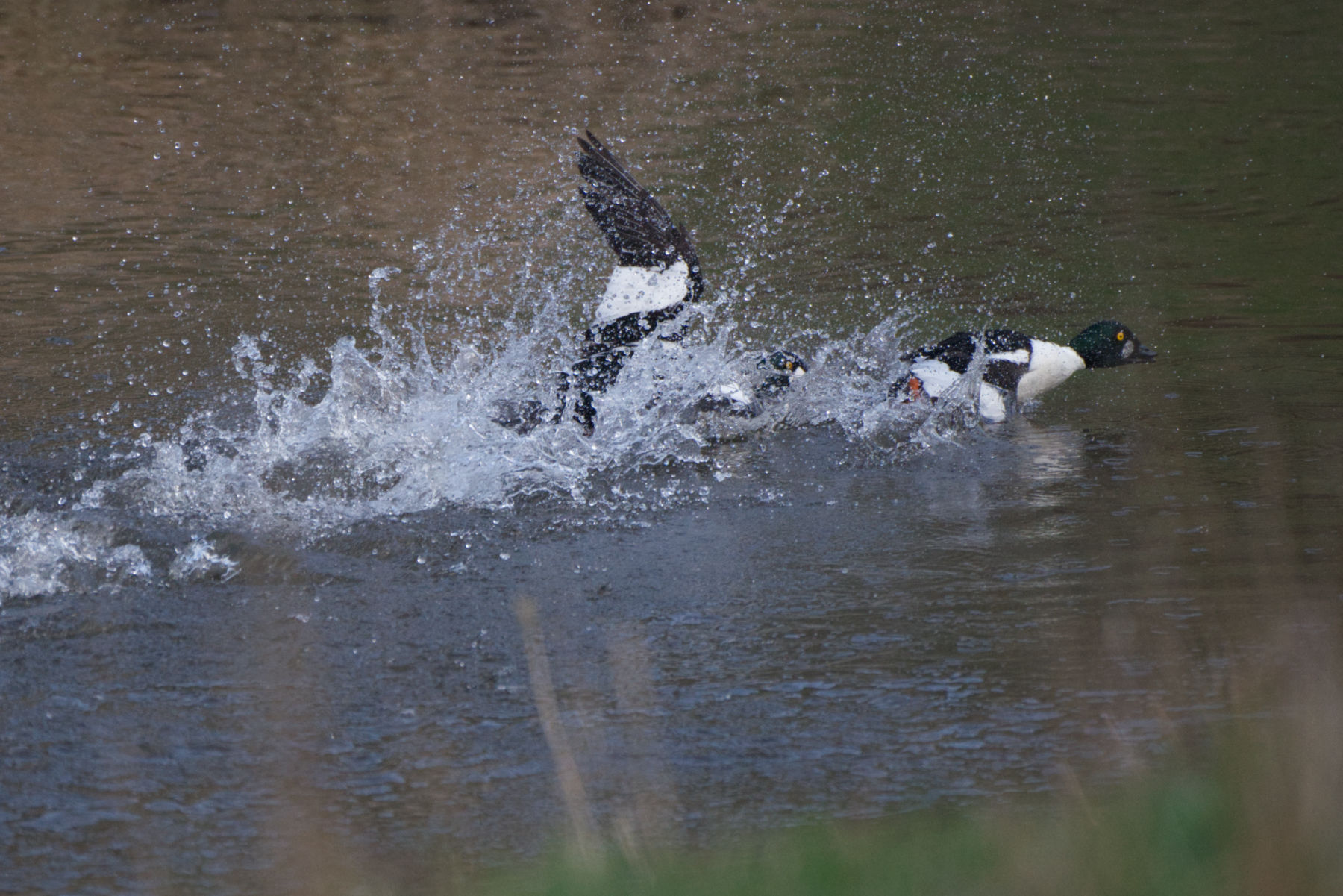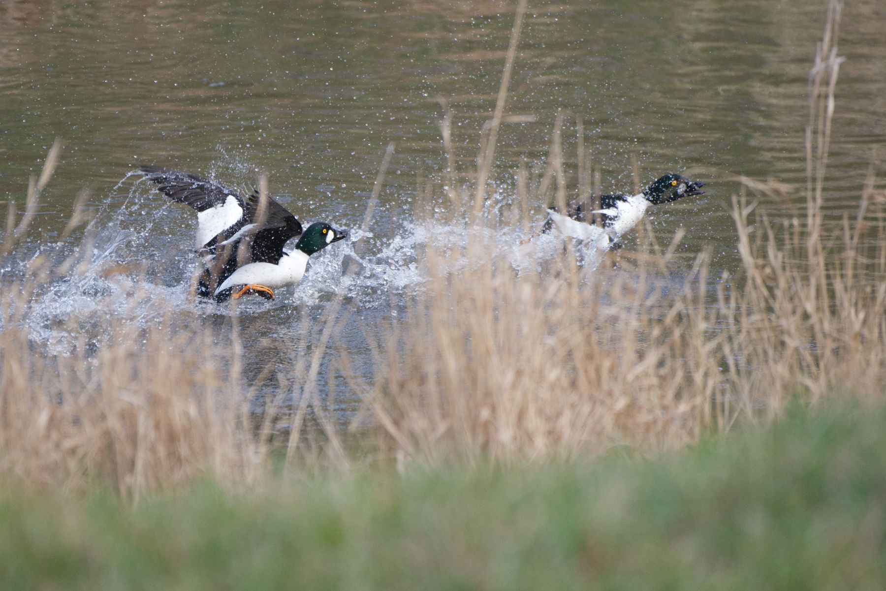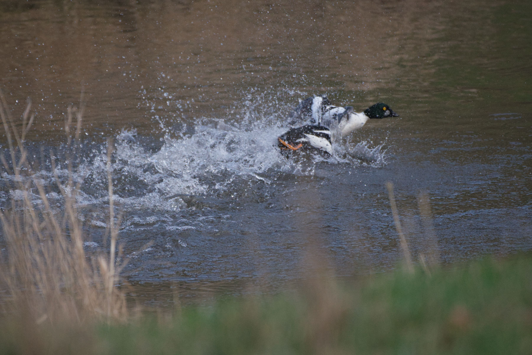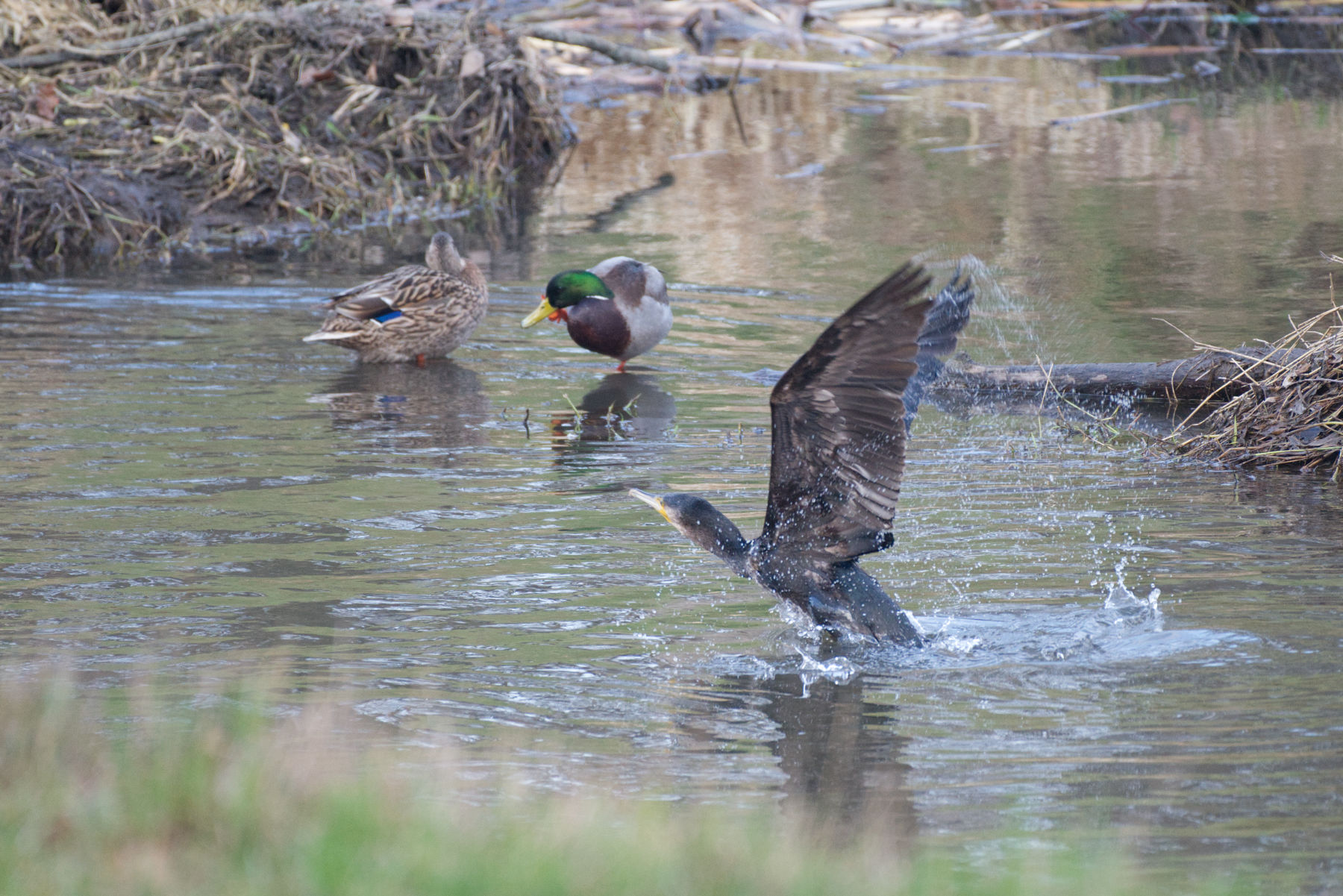 In der Fotoschau unten zu sehen sind: einer von zahlreichen Kormoranen, ein Kolkrabe (beobachten konnte ich zwei Kolkraben, mutmaßlich ein Paar), Schellenten (von denen es zahlreiche gab, wobei es nicht immer ohne Konflikte blieb) und ein einzelnes Pfeiffentenpaar (sofern ich die Art korrekt bestimmen konnte, für Berichtigungen in den Kommentaren bin ich selbstredend offen).