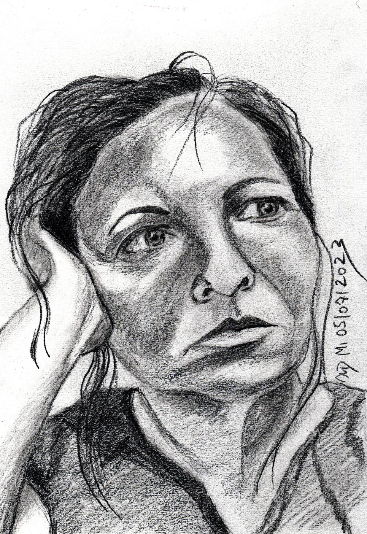 Self-portrait, wednesday, 05.07.2023, pencils, paper, format A4. © Ines Udelnow 2023