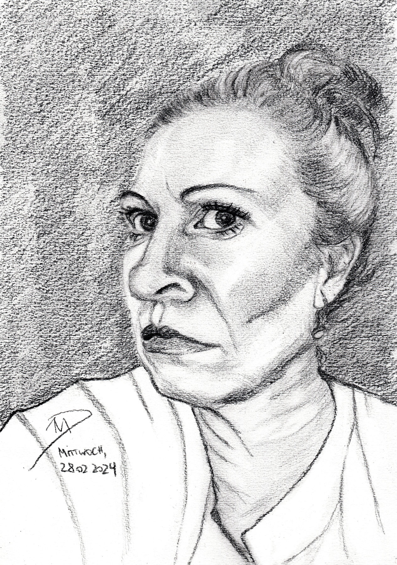 Wöchentliches Selbstporträt mit Bleistiften. Zeichenpapierformat A4, Mittwoch, 28. Februar 2024