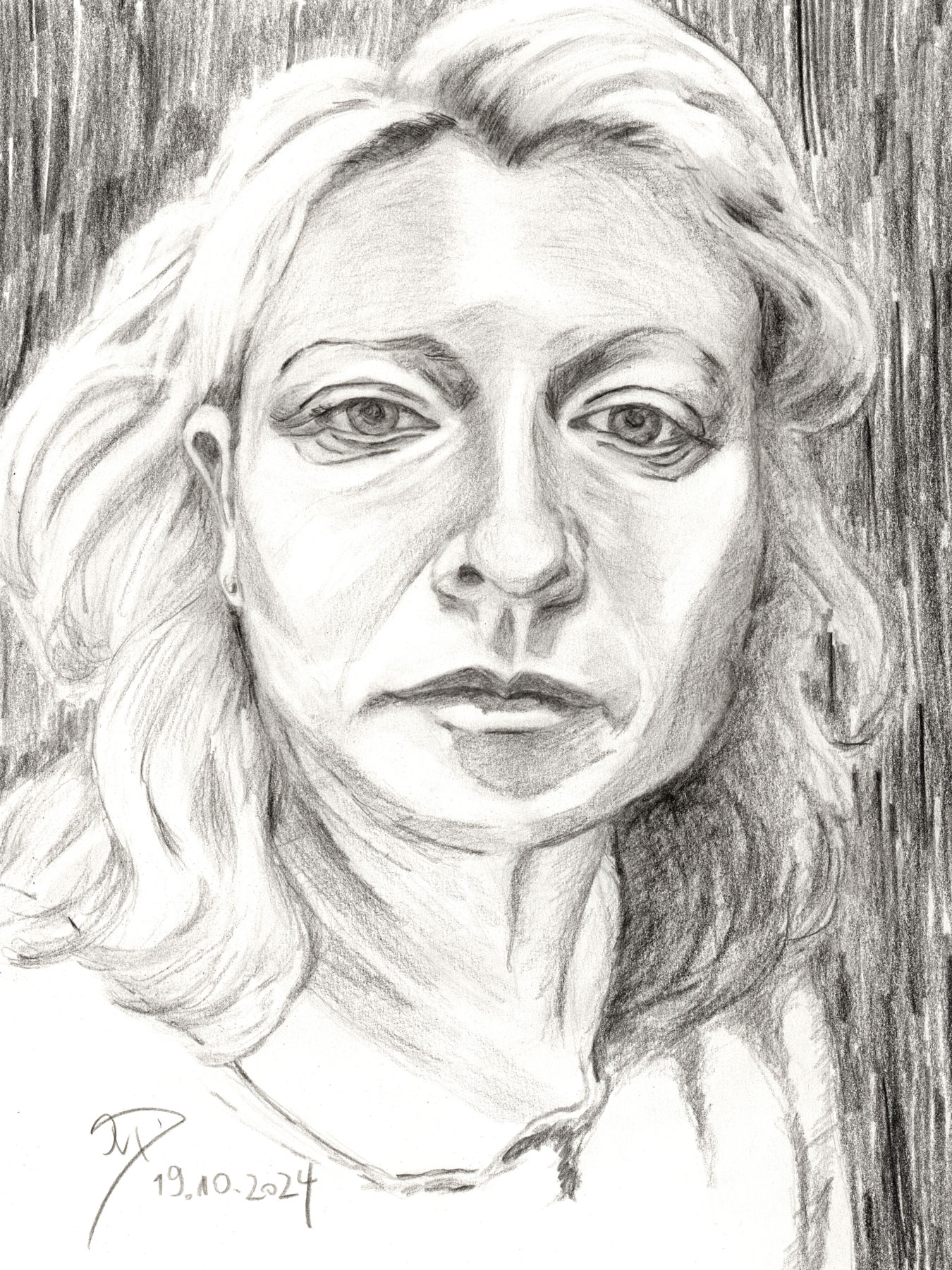 Wöchentliches Selbstporträt mit Bleistiften. Zeichenpapierformat A4, 19. Oktober 2024