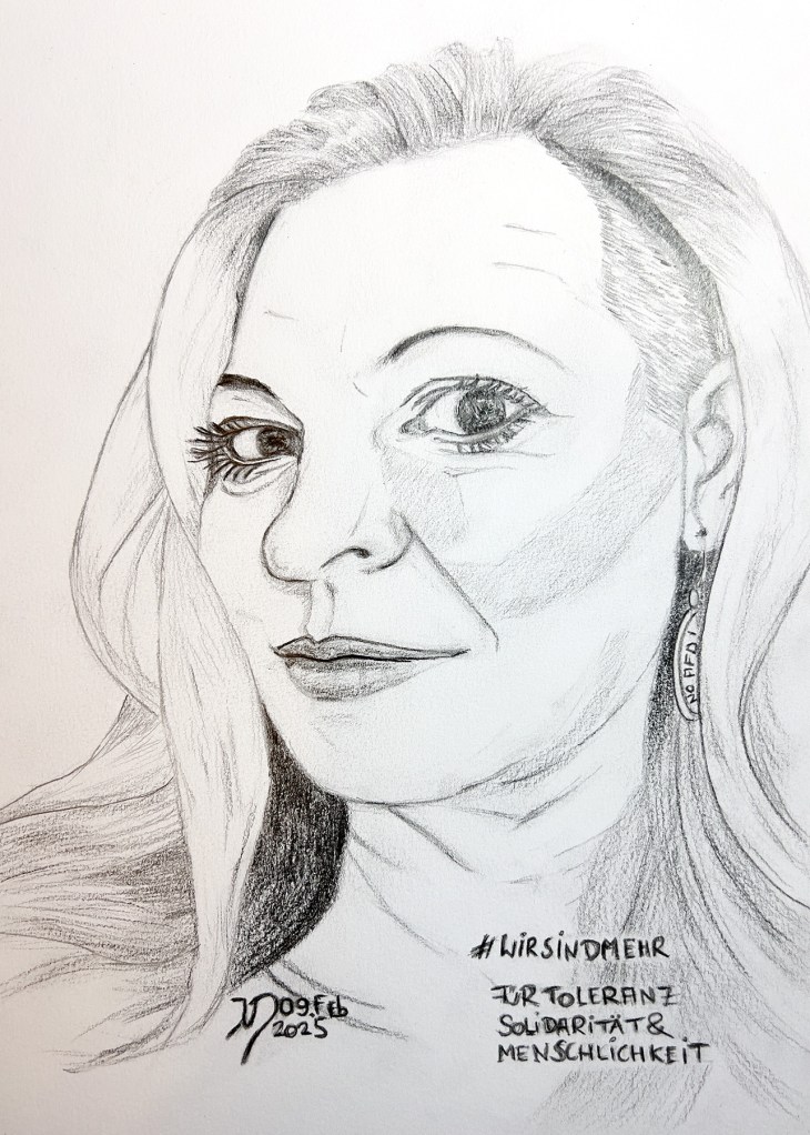 Das gestrige Selbstportrait, mit Bleistiften auf Zeichenpapier im Format A4, ist gleichzeitig ein Bekenntnis zu unseren demokratischen Werten, für Solidarität, Toleranz und Mitmenschlichkeit