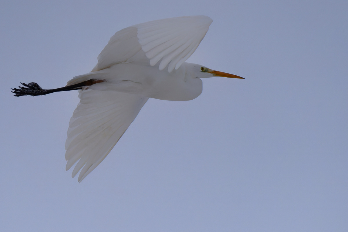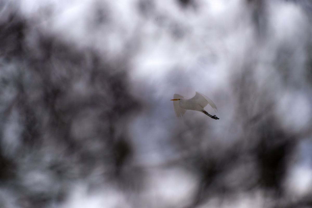 Silberreiher im Flug. Januar 2026. (c) Ines Udelnow