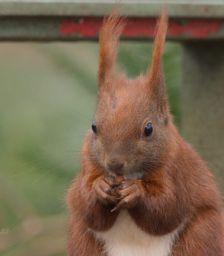 Immer ein hübscher Anblick, so ein rostbraunes Eichhörnchen. Besonders niedlich sieht es aber aus, wenn…