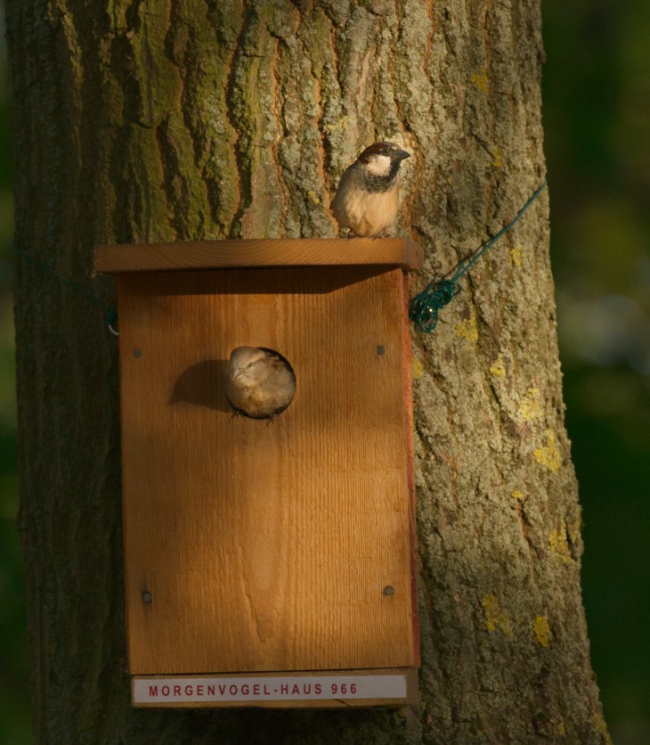 Familie Spatz genießt die Abendsonne. So saßen beide da, minutenlang, und guckten in die Abendsonne.…