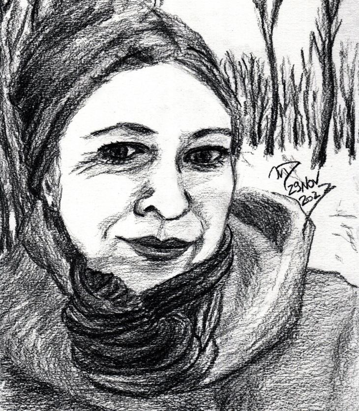 Wöchentliches Selbstporträt mit Bleistiften. Nach einem Handyselfie im verschneiten Tiergarten. Zeichenpapierformat A4, Mittwoch, 29. November…
