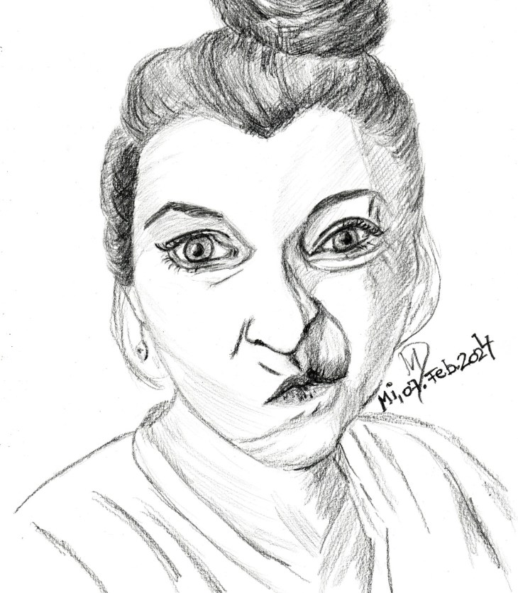 Wöchentliches Selbstporträt mit Bleistiften. Zeichenpapierformat A4, Mittwoch, 07. Februar 2024 Klick aufs Bild öffnet Ansicht…