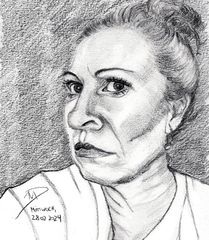 Wöchentliches Selbstporträt mit Bleistiften. Zeichenpapierformat A4, Mittwoch, 28. Februar 2024 Klick aufs Bild öffnet Ansicht…