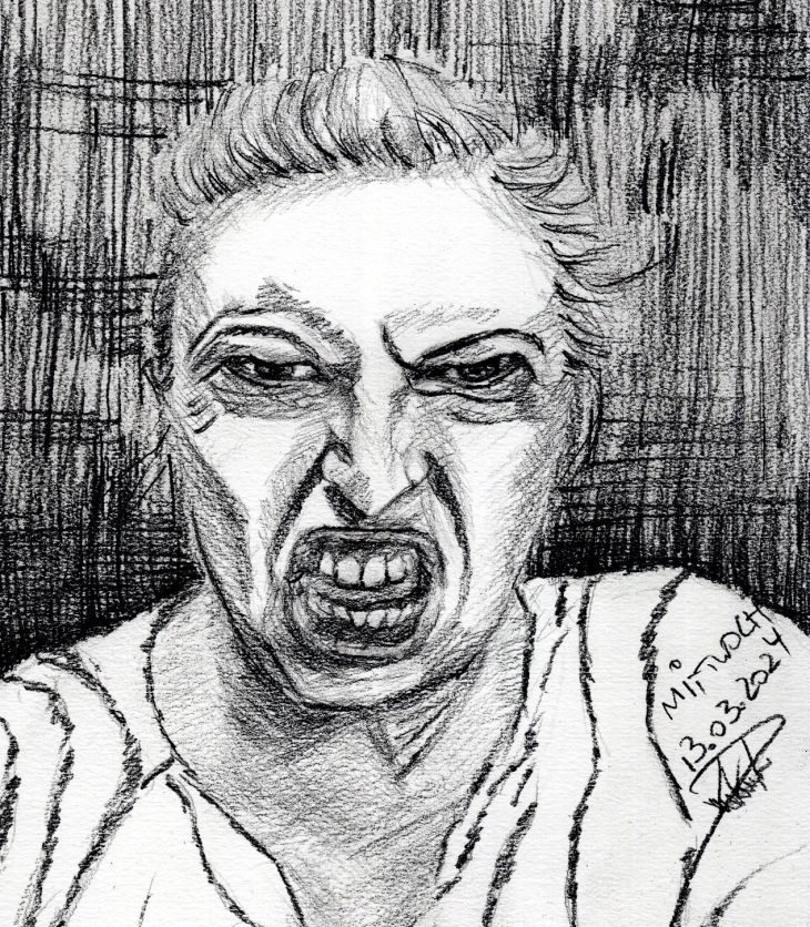 Wöchentliches Selbstporträt mit Bleistiften. Zeichenpapierformat A4, Mittwoch, 13. März 2024 Klick aufs Bild öffnet Ansicht…