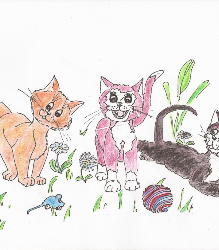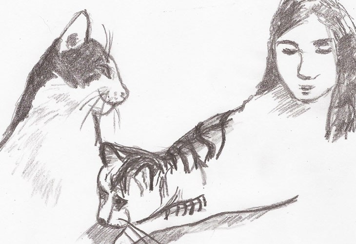 Katze, Buntstiftzeichnung auf Silberburg Büttenpapier A4. © Ines UdelnowBin etwas angeschlagen; nix schlimmes, aber auch…