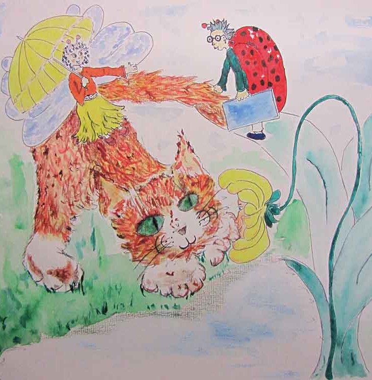 … Katzenkritzelei, hier zunächst als Ausschnitt. Was die beiden dort zu bereden haben? Was hecken sie aus?…