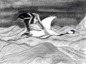 Kranichflug, Bleistift auf Papier, Format A4, November 2019