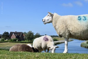 Schafe auf der Nordseeinsel Pellworm, Juli 2019