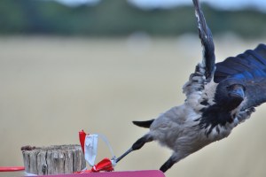 Junger Habicht und schimpfende Amsel, Humboldthain, Berlin Wedding, 18.06.2020, © Ines Udelnow