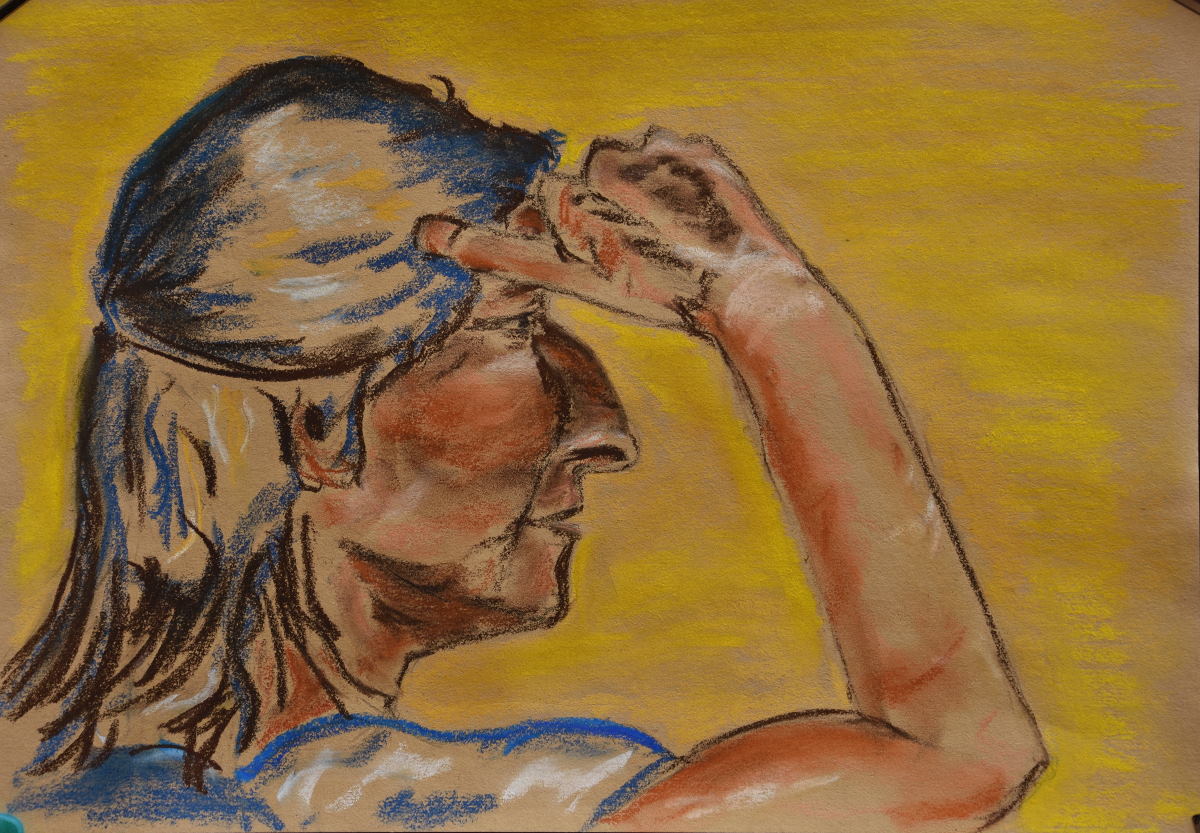 Ausschau, Pastellkreide auf A3 Skizzenpapier braun, 12.06.2018