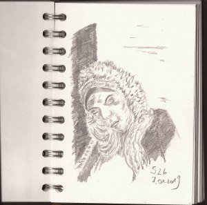 S-Bahn-Skizzen, Schlafende junge Frau, Skizzenbuch A6, Grafitstift, 08.01.2019