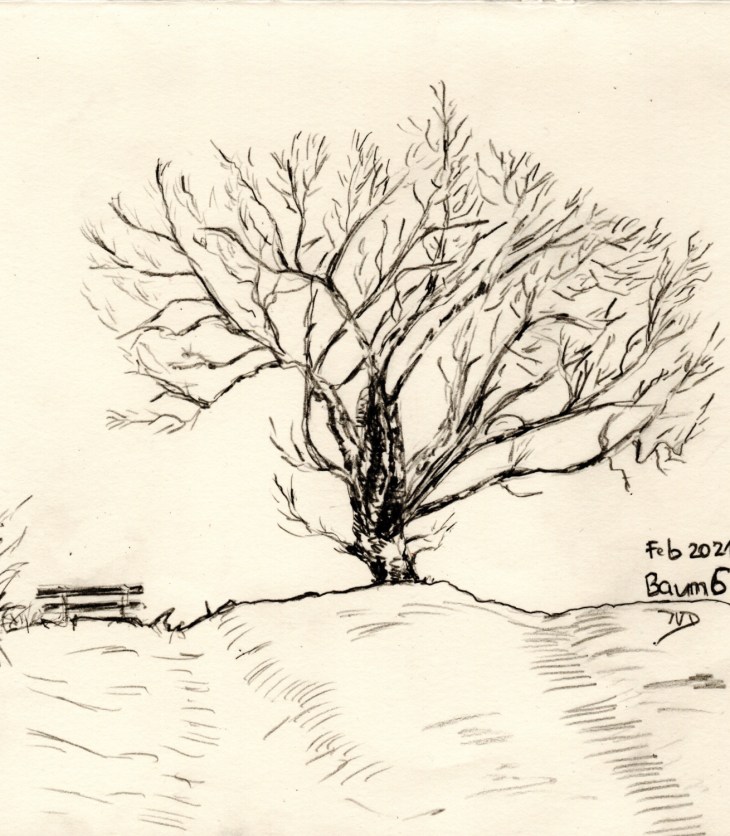 Der auf dieser Zeichnung im Zentrum stehende Baum ist mutmaßlich ein Ahorn; allerdings will ich…