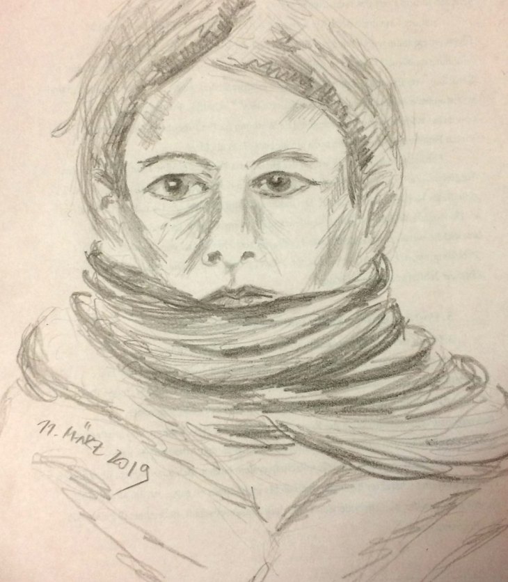 Mittwochsselbstportrait nachgeholt am heutigen Donnerstagabend, mit Bleistiften im Skizzenbuch ca A5. Ansonsten ohne viele weitere…